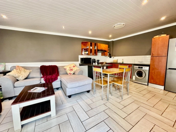 Private bachelor pad with screeded floors and caesarstone kitchen.