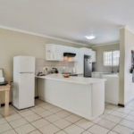 Private bachelor pad with screeded floors and caesarstone kitchen.
