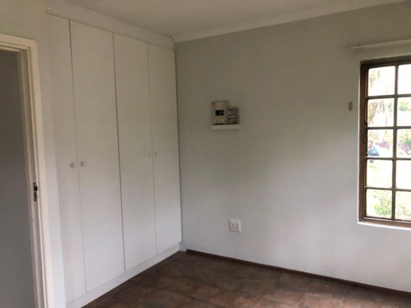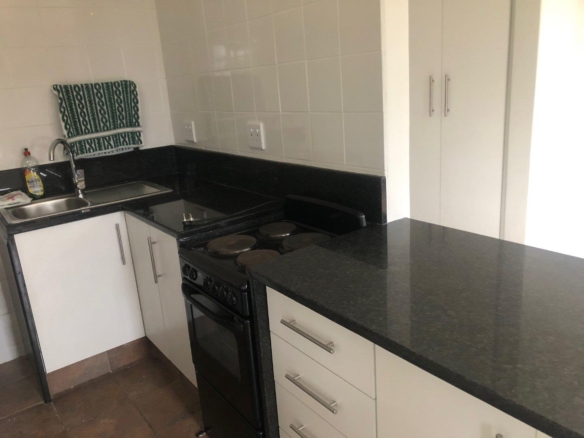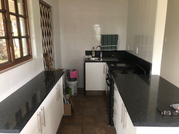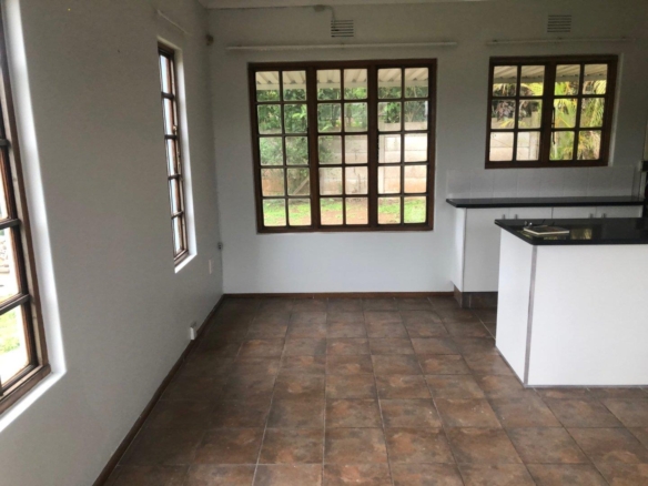 Newly renovated cottage to rent in West Riding. Ideal for a single professional or a young couple. Open plan lounge area and kitchen with room for a single door fridge. Linen cupboard in passage. 1 Bedroom with built in cupboards. Full bathroom with bath and shower. Undercover braai area and the garden is fenced off. Pets allowed with permission, no large breeds. Water and garden service is included. Electricity is prepaid. Single carport. Available immediately