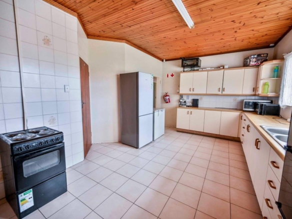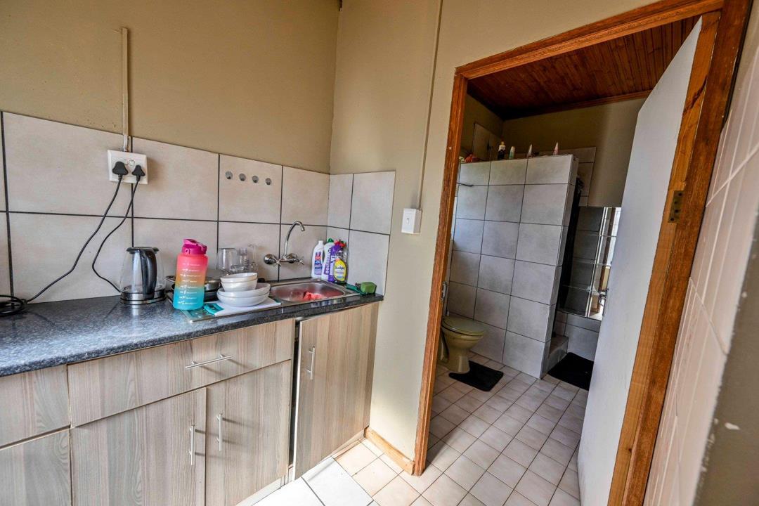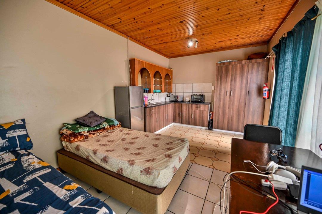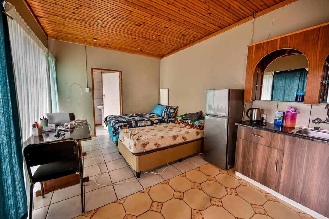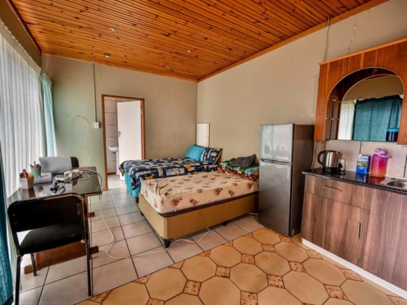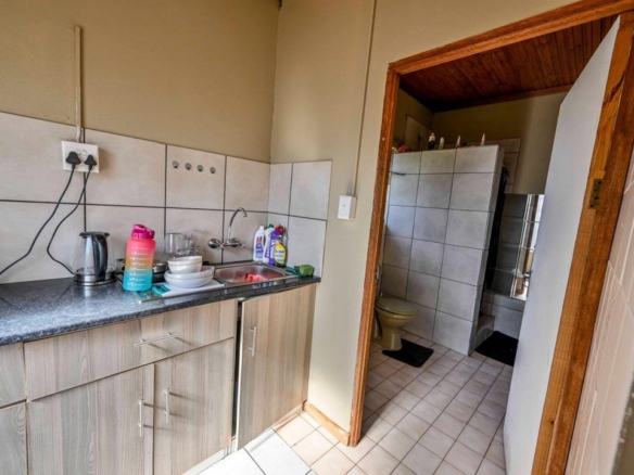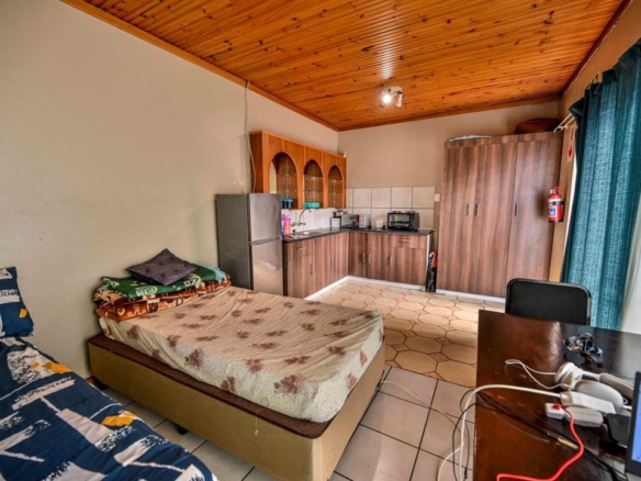 The main house features 9 bedrooms (including two sharing room), 2 bathrooms, and a spacious, fully equipped kitchen designed to accommodate multiple tenants with ease. With ample storage, generous prep areas, and a seamless flow into the large communal entertainment area with built-in braai, the layout is ideal for student living and socializing.