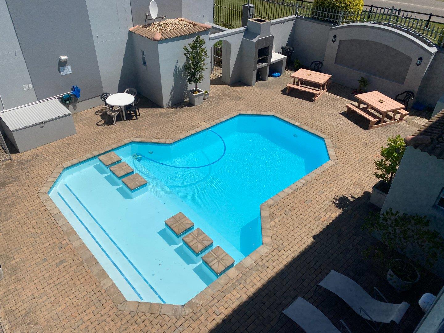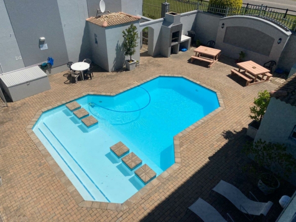 This spacious apartment is easily accessible via both the elevator and stairs from the secure underground parking and enjoys a large landscaped communal garden, fenced swimming pool and braai area overlooking the piesang valley.