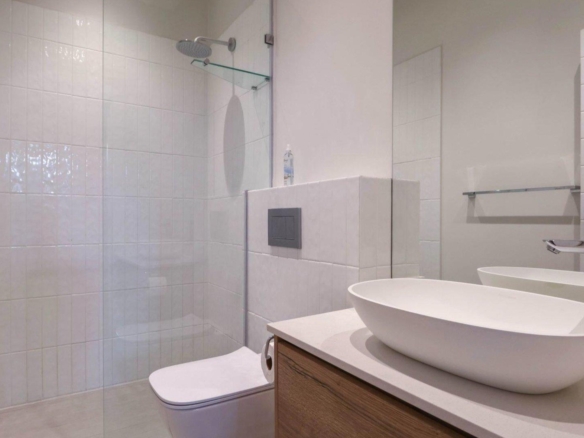 The kitchens are a chef’s delight, offering ample storage, integrated appliances, and classic breakfast bars. Both bedrooms boast en-suite bathrooms with luxurious fittings. Practicality is also paramount, with two allocated basement parking bays and an 11sqm lock-up storage room per unit.