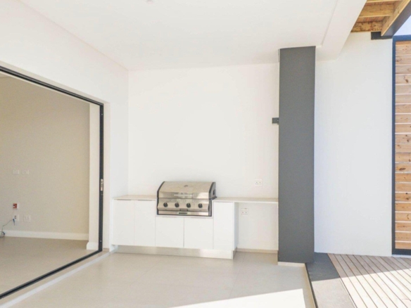 Step into a world of sophisticated design, evident from the welcoming foyer to every ultra-modern interior. High-end finishes, intelligent use of wood, steel, and glass, and a lift accessing all floors define the essence of cool elegance. Enjoy open-plan living with spacious lounge/dining areas flowing onto a generous, partly-roofed balcony, complete with a built-in gas braai and bar area – perfect for entertaining.
