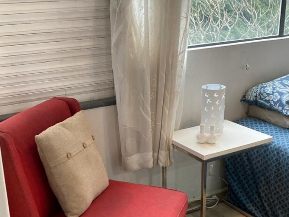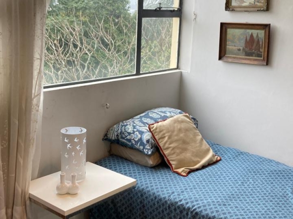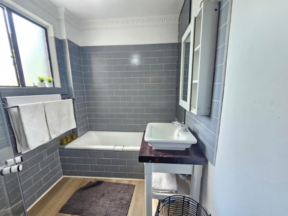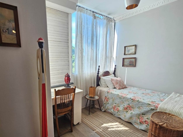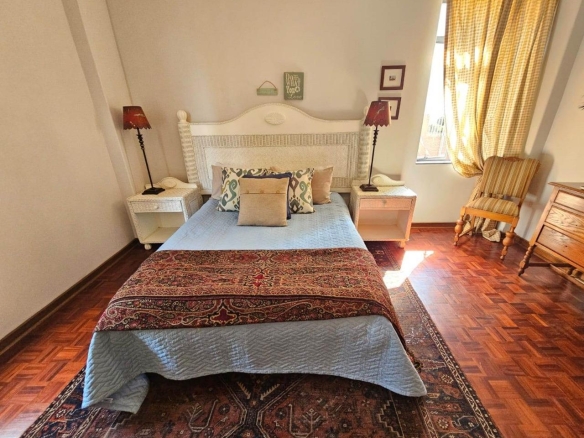 It consists of two bedrooms, the main has a queen size bed and the 2nd bedroom has been converted from a balcony into a single bedroom with a single bed, both sharing a modern bathroom with bath and shower and a separate loo.