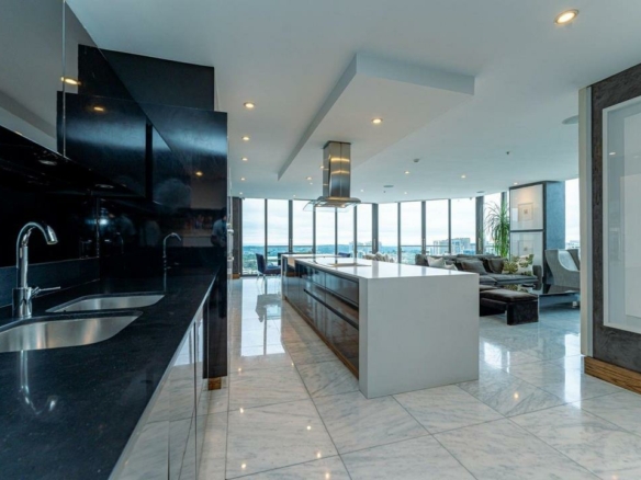 Luxurious and sophisticated space with marble floors and a well designed kitchen allowing you to have your bar ,Chef ,entertain and socialise all in one place whilst boasting only the best Gaggenau and Siemens appliances and enjoying the magnificent breathtaking 180 degree views day and night.