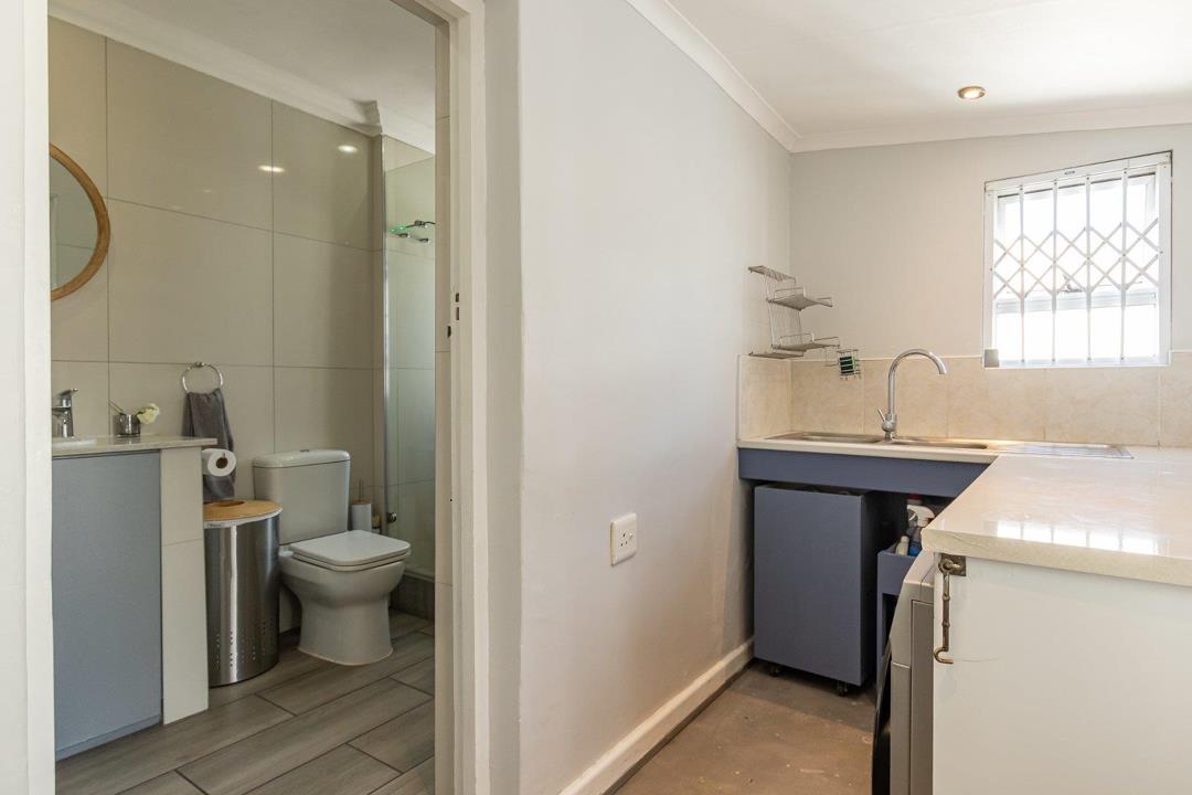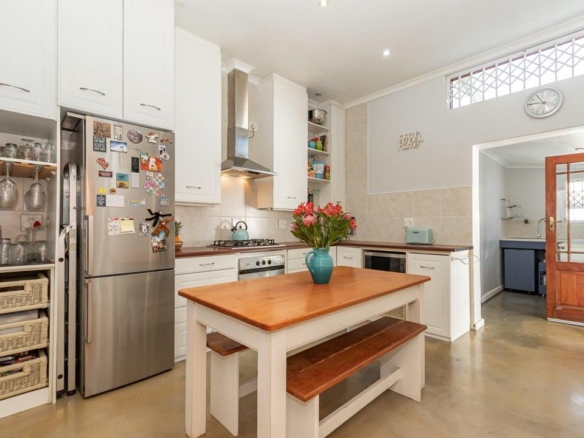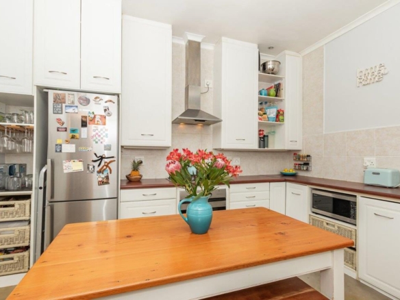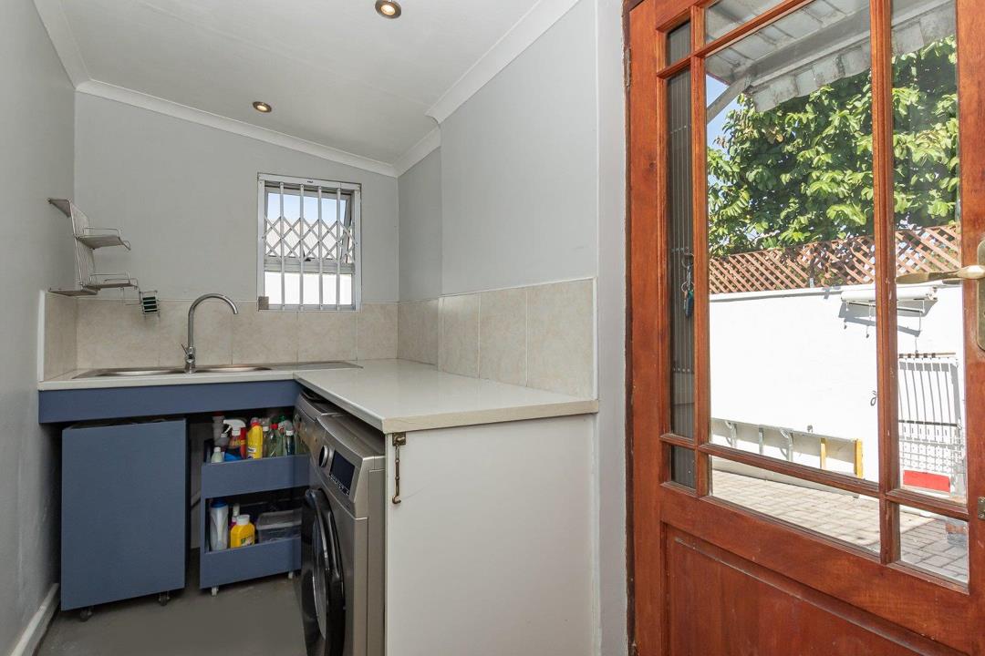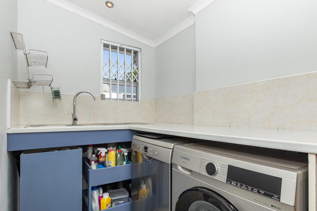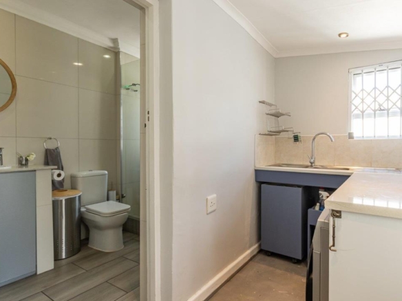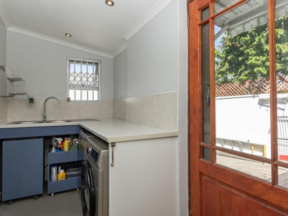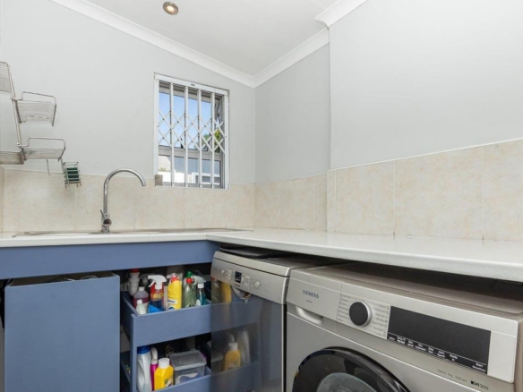 Kitchen with plenty cupboard space and gas hob plus laundry section off the kitchen and a door to the parking space.