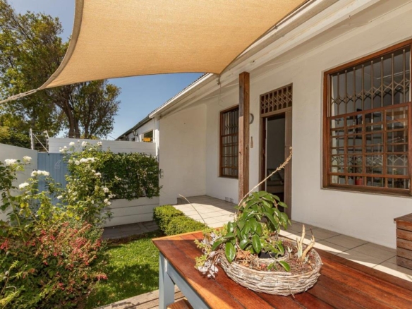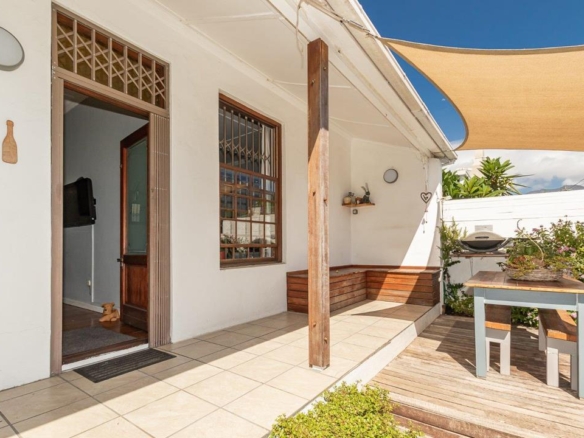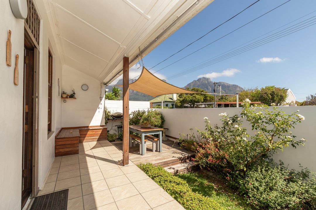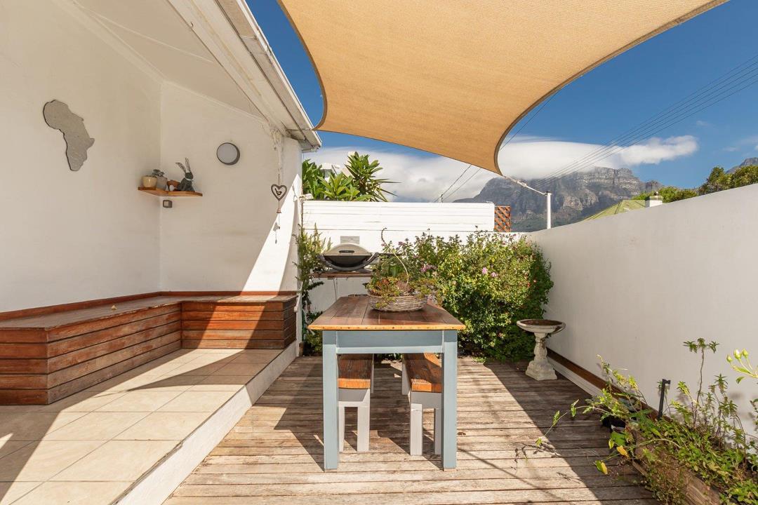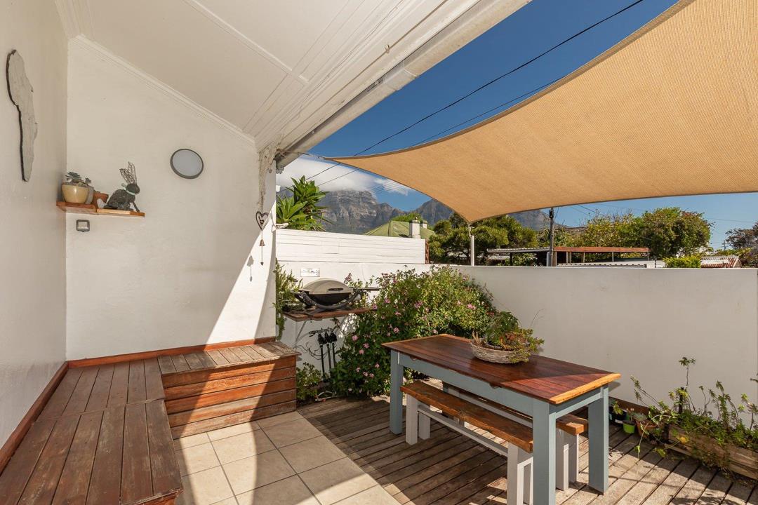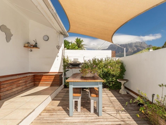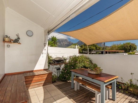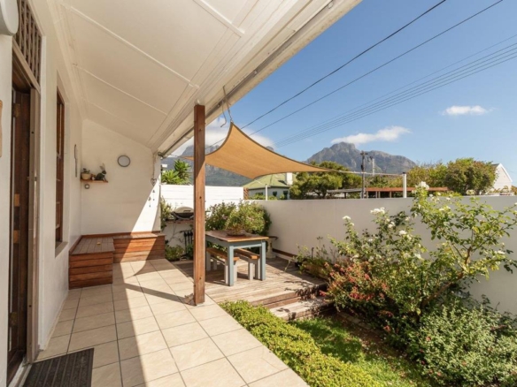 The patio offers mountain views with a small garden and a pedestrian gate off Heather street
