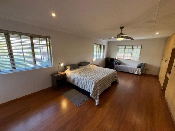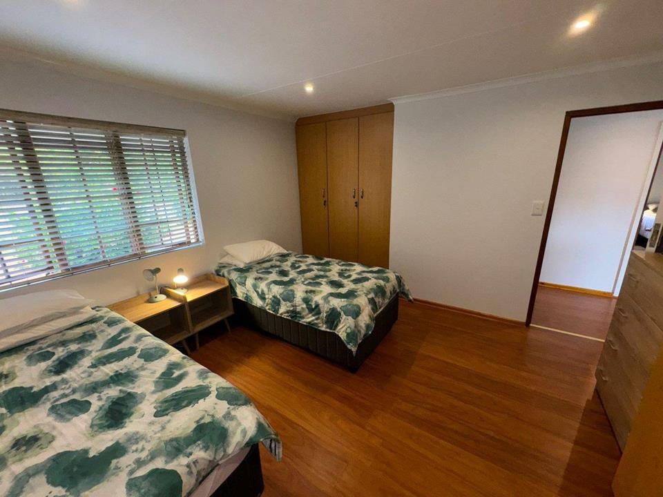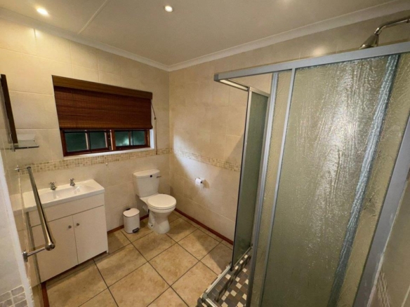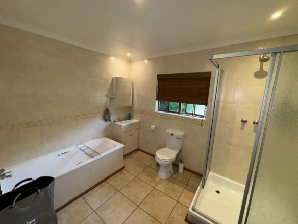 The home boasts two spacious bedrooms, both filled with natural light and equipped with ample cupboard space. The master suite includes a luxurious full en-suite bathroom, while a second bathroom and guest toilet serve the rest of the home. The main bedroom can very easily be changed into two bedrooms, making this a three-bedroom home.