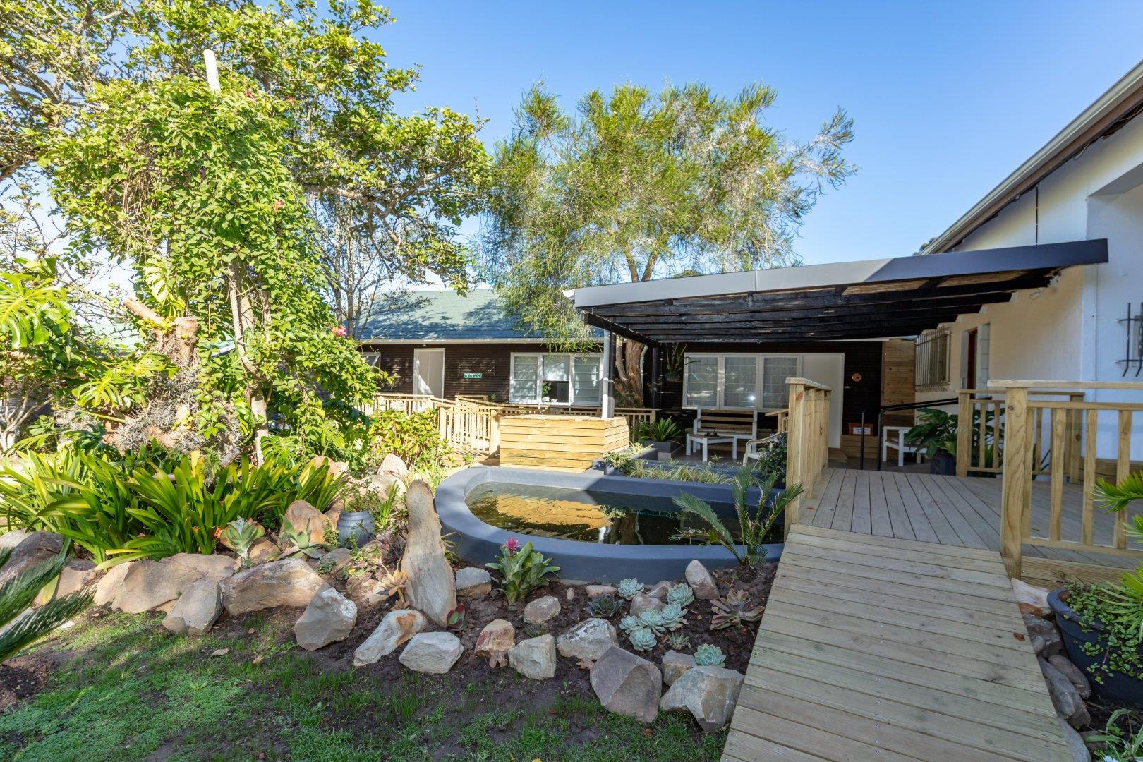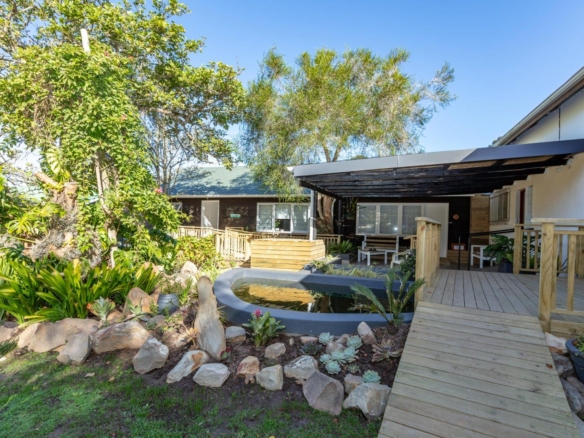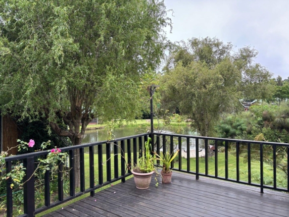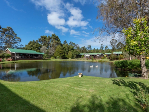 Spacious life right retirement home in secure retirement village with a solid structure and nutec cladded exterior overlooking the lake, water feature and the resident swans whilst being set amongst landscaped gardens with lush lawns, flowering shrubs and large mature trees in this truly idyllic setting only 10 minutes from central Plettenberg Bay town.
