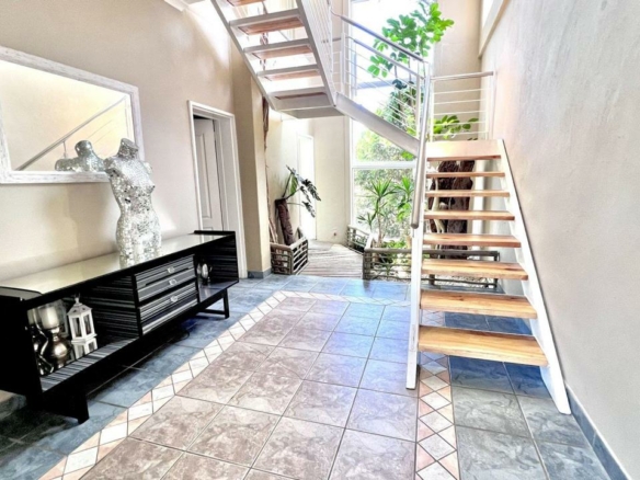 Outdoor Bliss: Enjoy outdoor living at its finest with a patio equipped with a built-in braai, perfect for al fresco dining. The extra-large double garage not only stores vehicles but can easily accommodate a boat, a third car, or a trailer.