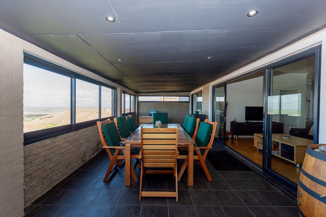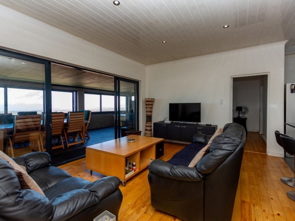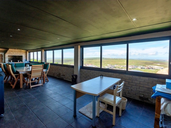 Perched on a cliff in the heart of Vredenburg, this stunning property offers uninterrupted, sweeping views of Saldanha Bay, Langebaan, and on clear days, even the iconic Table Mountain. With no possibility of future development in front of the property, your view is forever protected.
