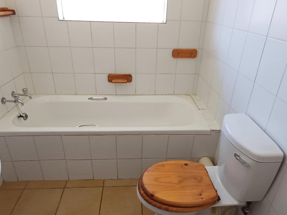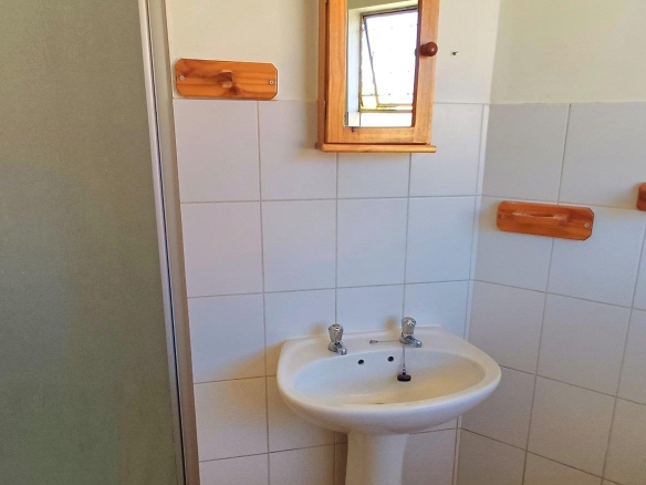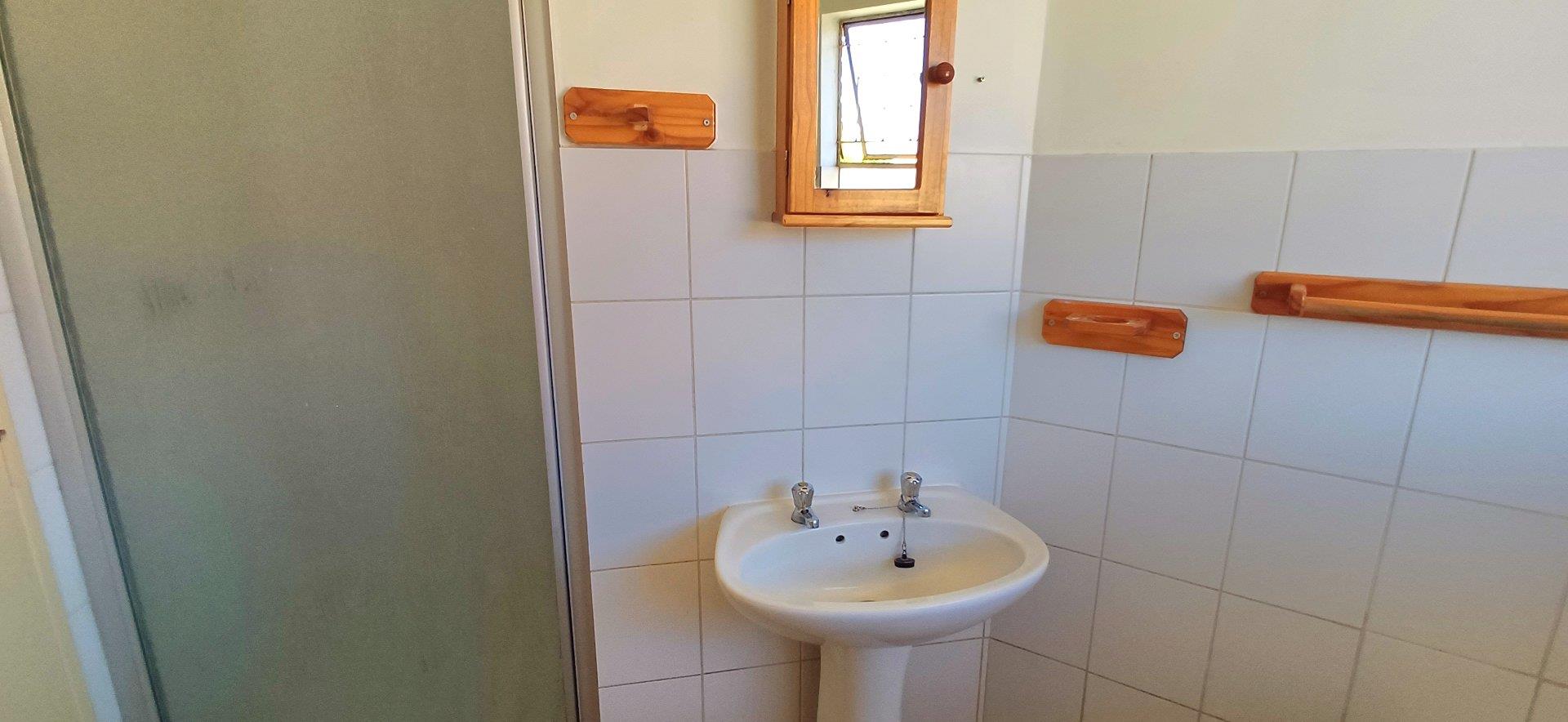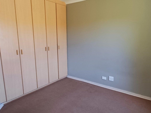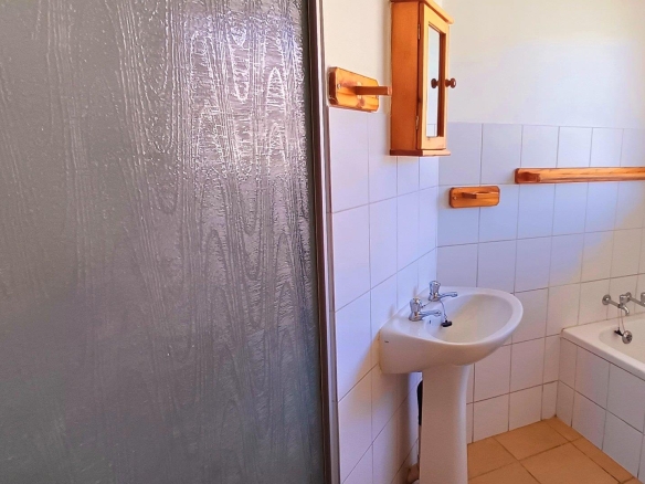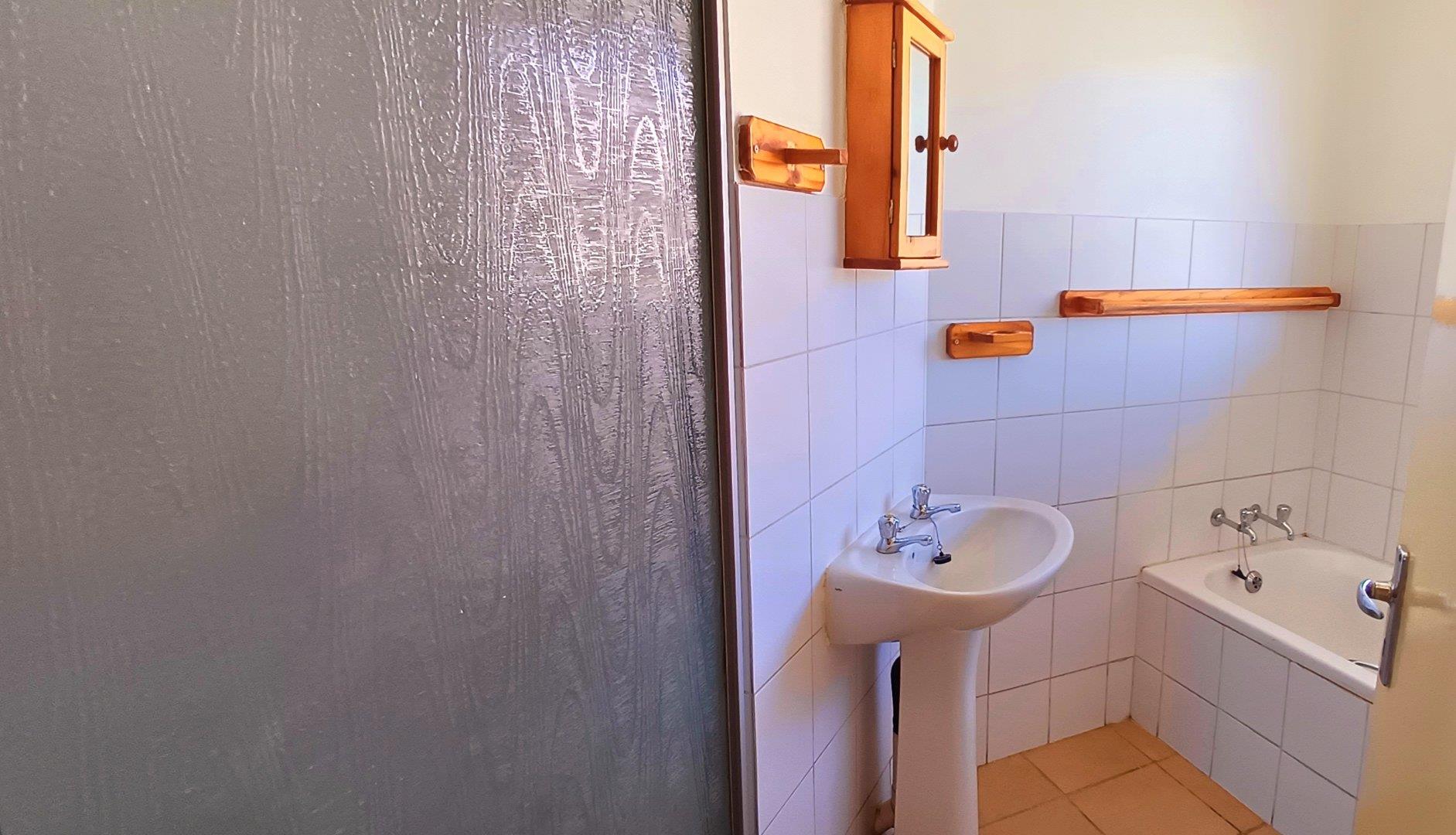 Offers two bedrooms with built-in cupboards. a Neat bathroom with a shower and bath.