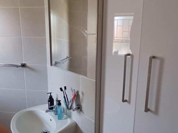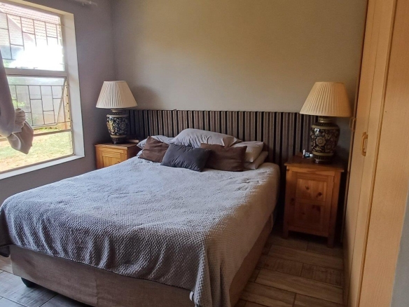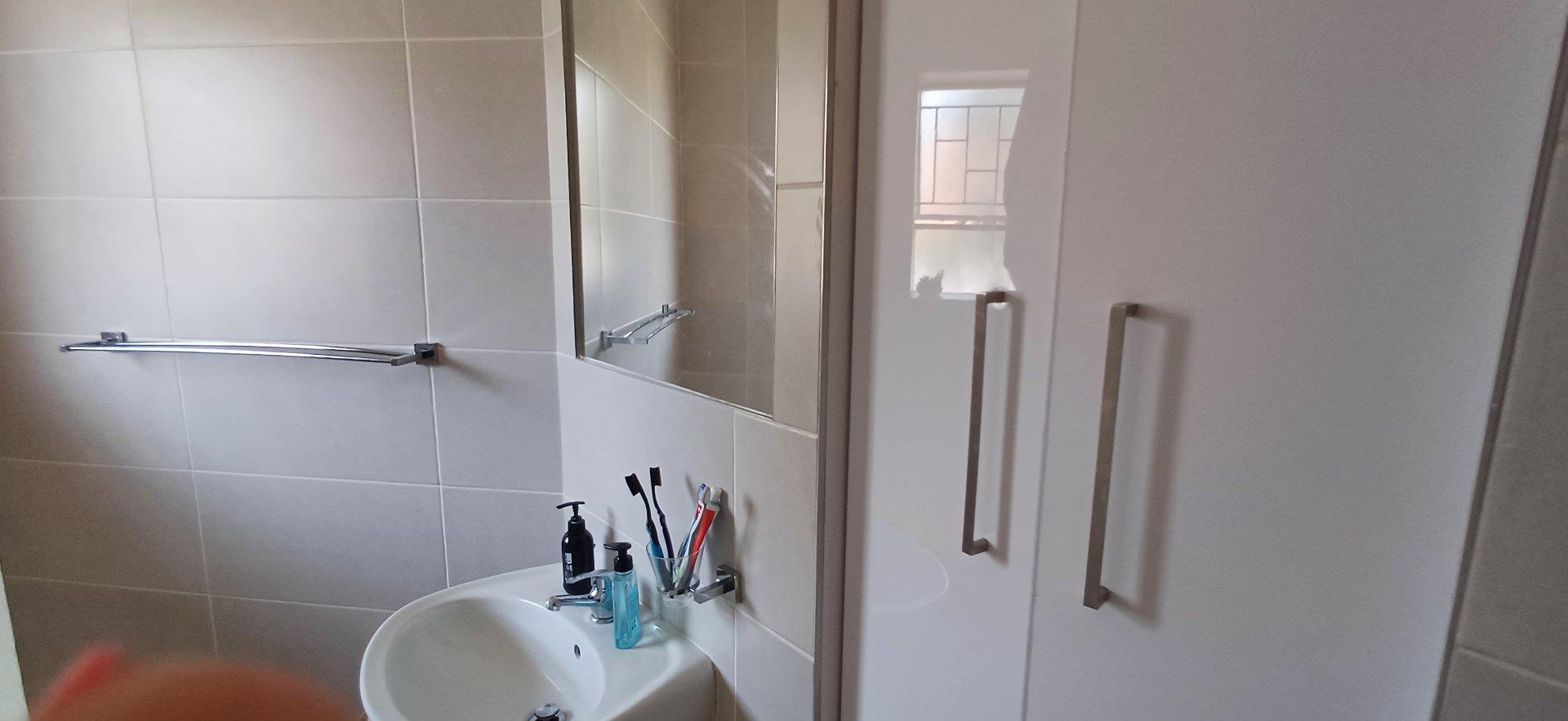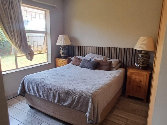 Offers two bedrooms with built-in cupboards. Neat bathroom with a shower and bath.