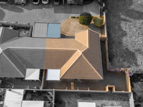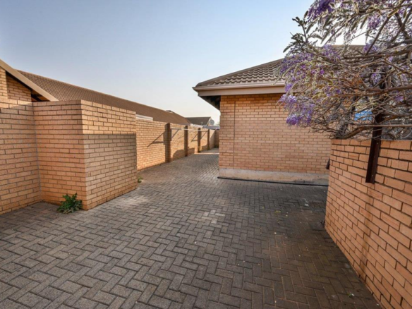 The open-plan living area flows effortlessly between the kitchen, dining, and lounge, ideal for both entertaining and relaxing. The modern kitchen, with its scullery leading to a private garden, combines style and functionality. Outside, the neatly paved veranda with a louvered awning provides the perfect spot to unwind, while the enclosed courtyard and garden add a peaceful touch of nature.