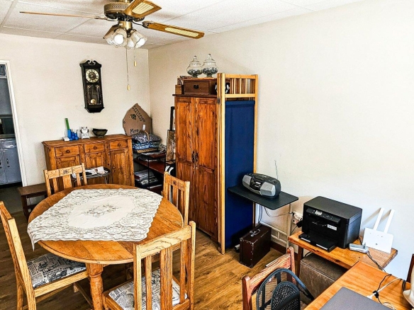 Indulge in the luxury of an upgraded bathroom, complete with a rejuvenating shower, toilet, and basin, providing a sanctuary of relaxation and rejuvenation. The garage has been ingeniously transformed into a versatile space, seamlessly transitioning between a delightful dining area and a convenient laundry room, catering to your every need with grace and style.