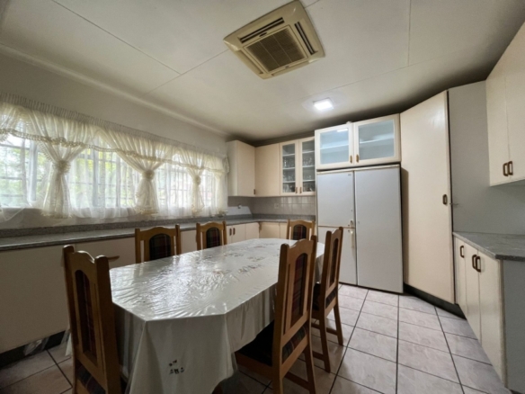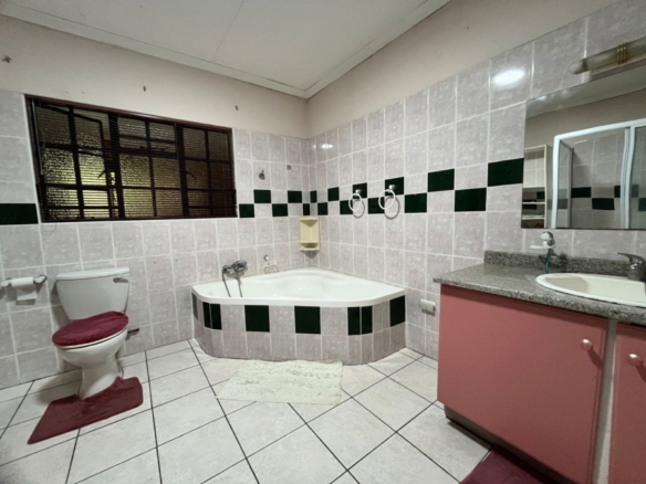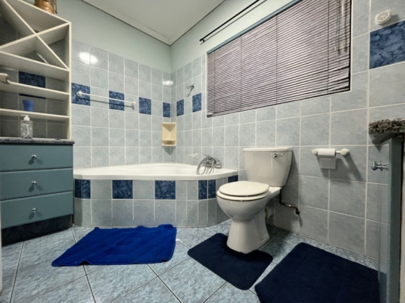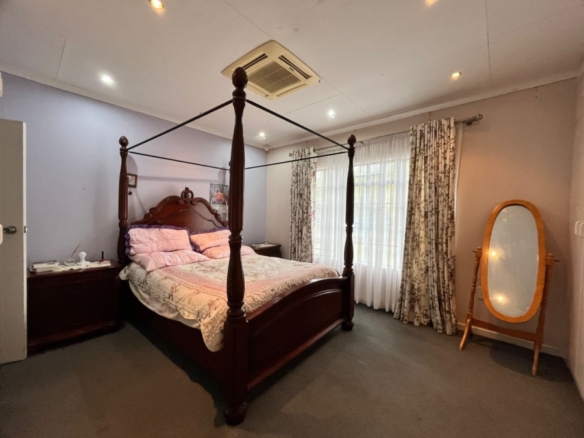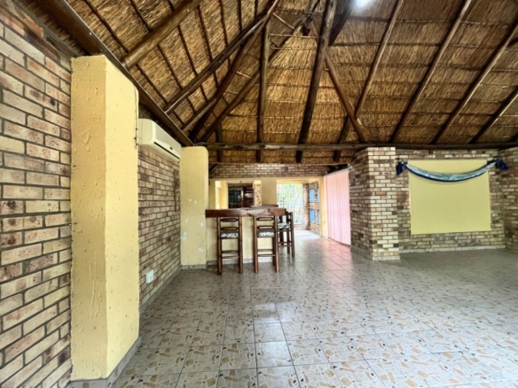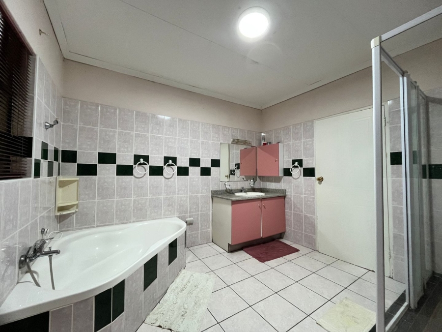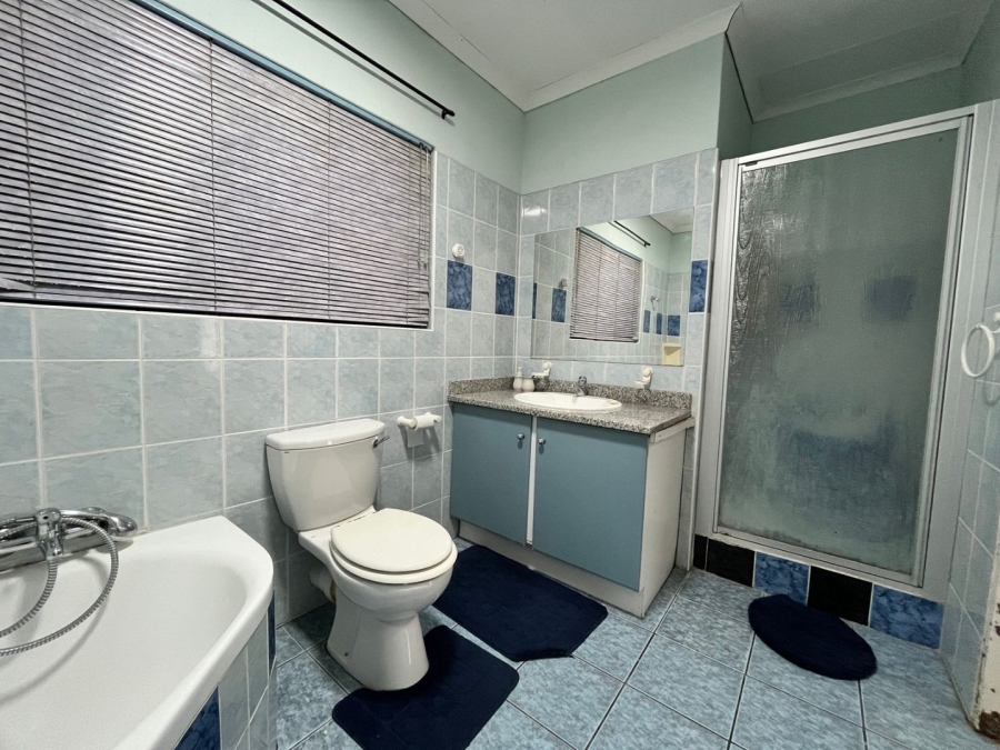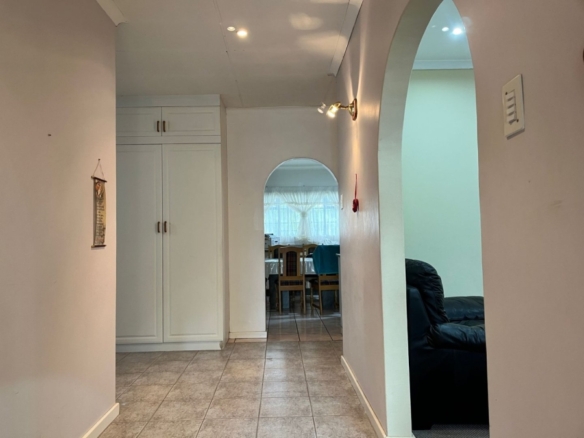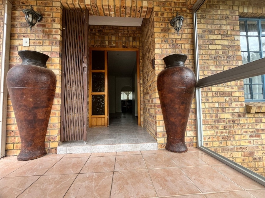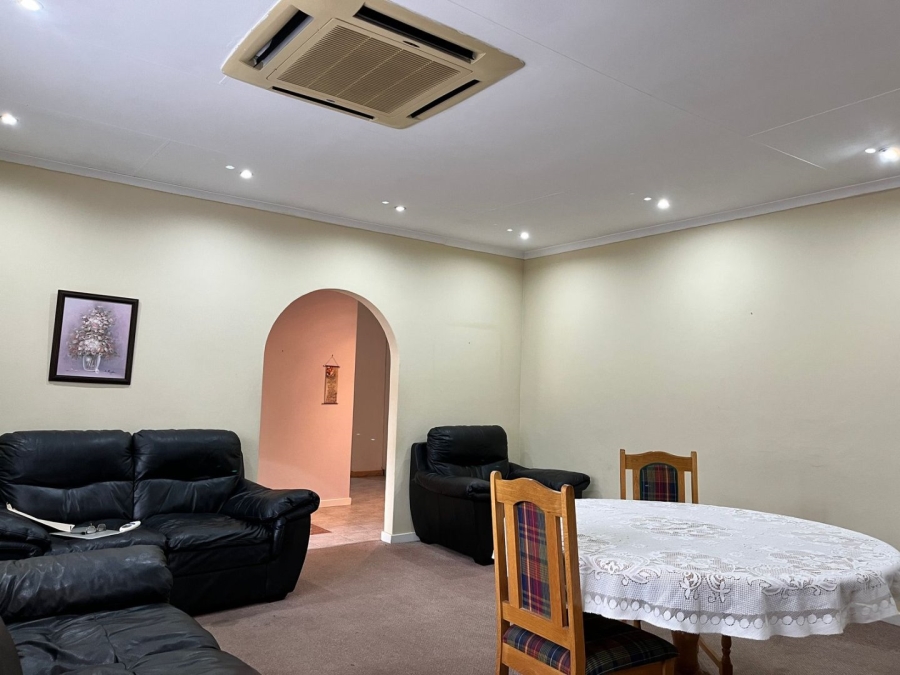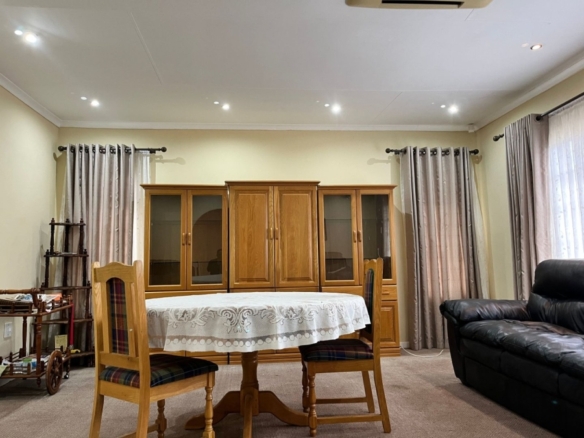 This stunning 3-bedroom home is designed for comfort and convenience. The spacious main bedroom includes an en-suite bathroom with modern fixtures and air conditioning for ultimate relaxation. With 2 additional bathrooms, the home ensures ample facilities for all residents. The fully equipped kitchen features a scullery and comes with a fridge, dishwasher, and kitchen table for added convenience. The lounge is divided, creating a welcoming atmosphere with plenty of room for family gatherings. For outdoor entertainment, there is a charming lapa and a refreshing swimming pool, perfect for relaxing or hosting guests. The property also includes a double garage and a double carport, both automated for ease of access. Additional features include an alarm system for peace of mind, 2 geysers for hot water supply, a guest room with its own bathroom (featuring a shower, sink, and toilet), and domestic quarters complete with a shower, toilet, and sink. Furniture is included, with a round table and 8 chairs, a comfortable lounge set, a king-size bed, curtains, and a mirror to complete the home’s elegant look. This home is a true blend of functionality, comfort, and style.