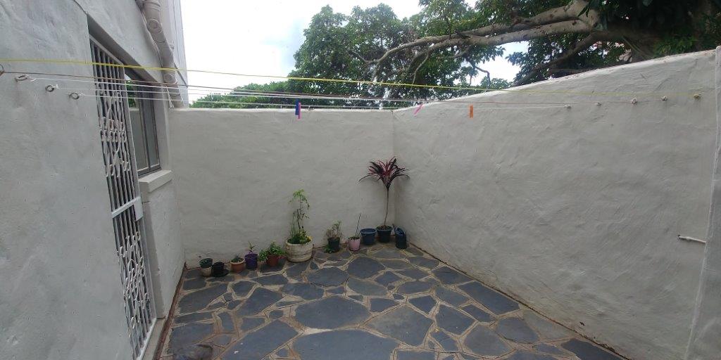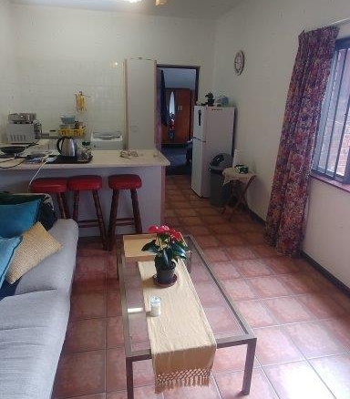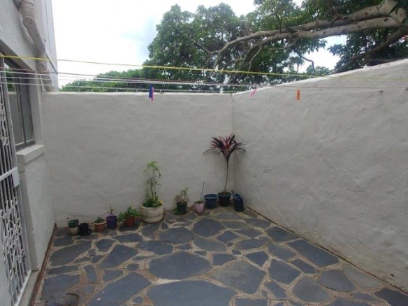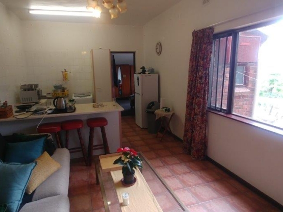 The fully-fitted kitchen has ample cupboard space and leads onto the courtyard with separate laundry, toilet, and shower.