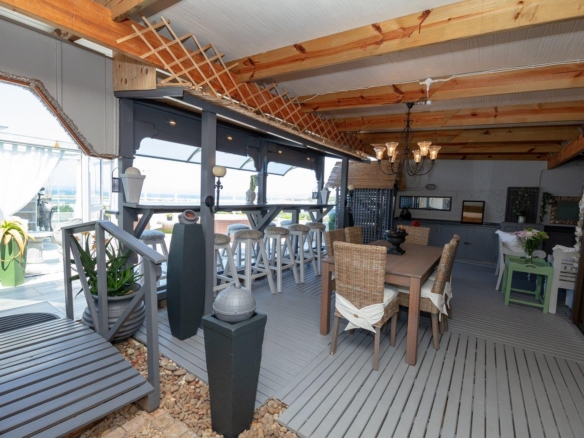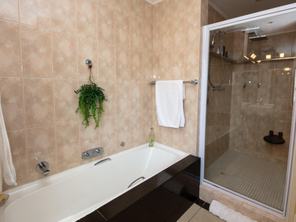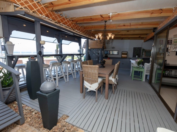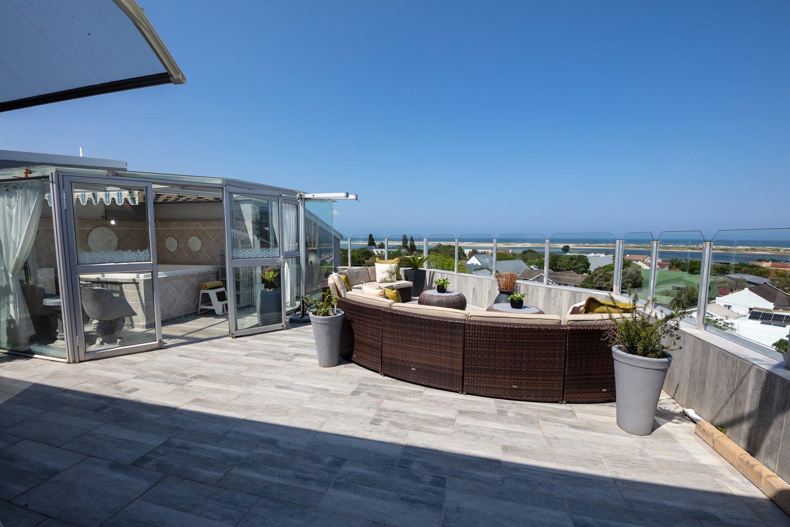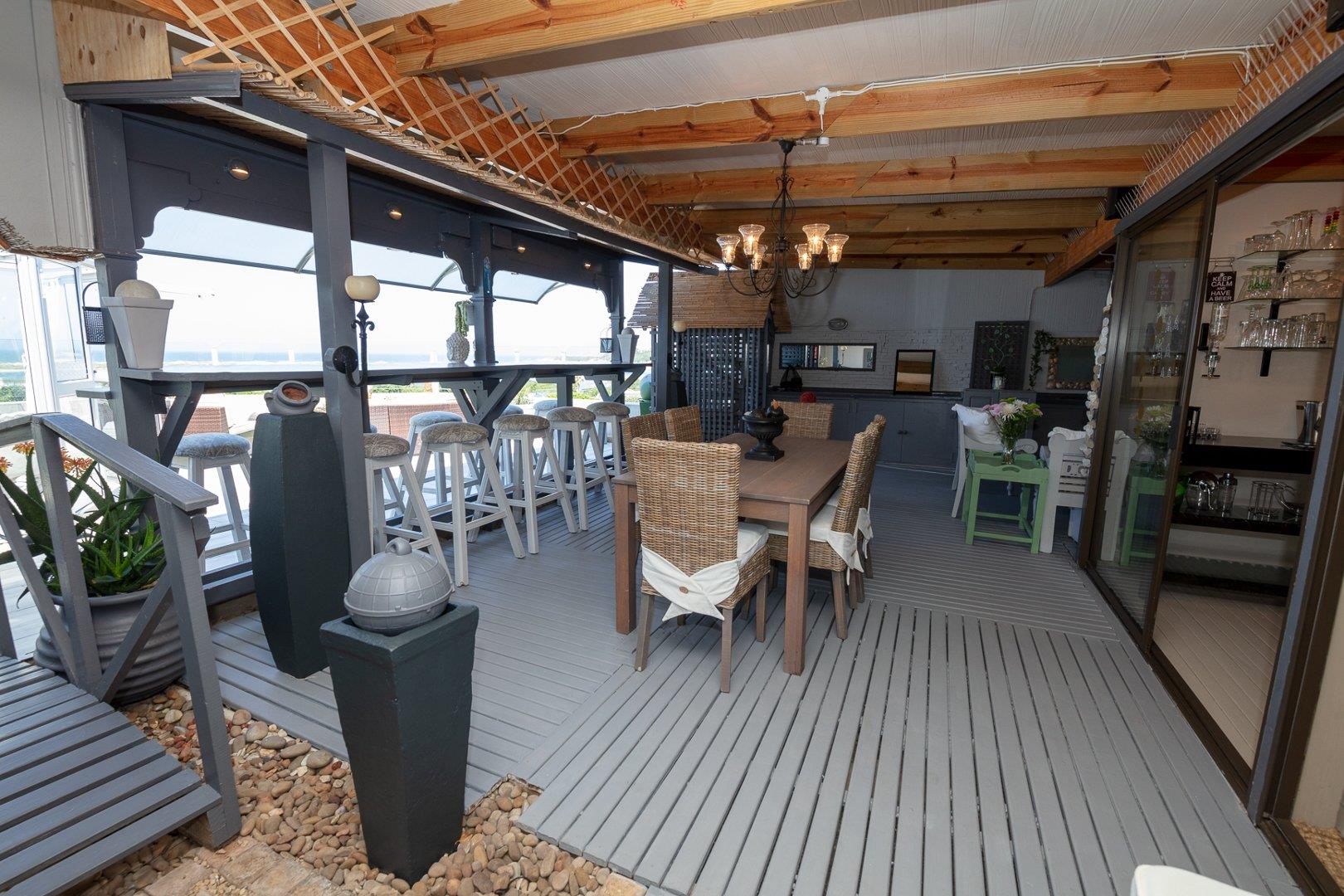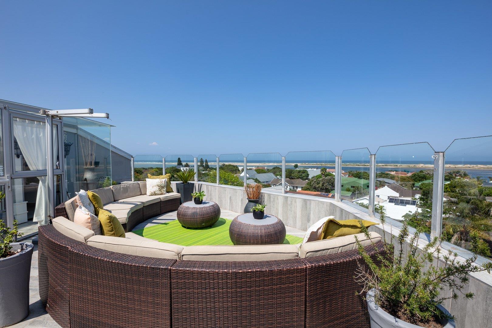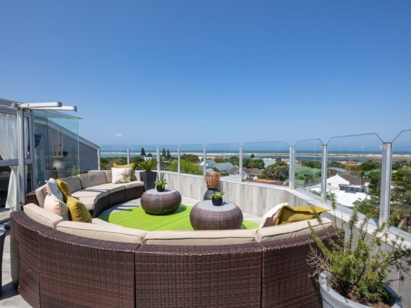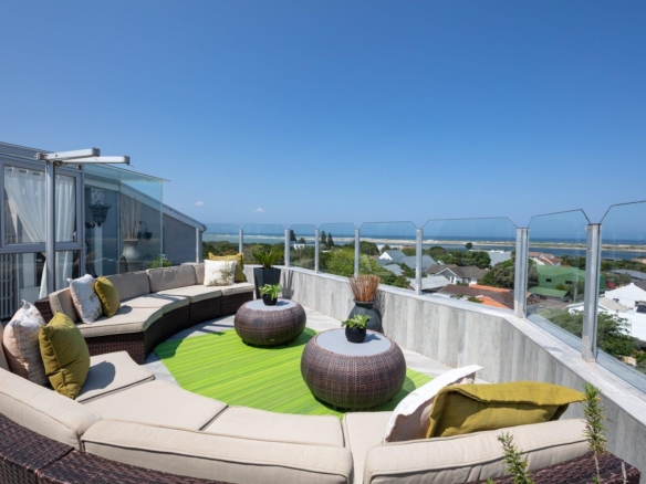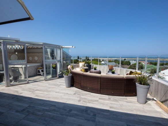 * Private and exclusive Rooftop entertainment area with outdoor seating, indoor dining, bar area, lounge with tv and pullout sleeper sofa, fully equipped kitchen, indoor bar, gas braai, as well as a large jet jacuzzi and steam shower