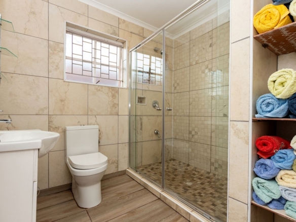 An indoor braai area adds warmth and charm, making it the heart of the home—ideal for year-round gatherings regardless of the weather.