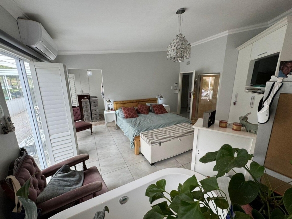 But this oasis doesn’t stop there. A charming 1-bedroom flat, complete with its own living area, bathroom, kitchen, and private garden, presents an irresistible income opportunity. Rent it out for R6500 per month or welcome guests in style – the choice is yours.
