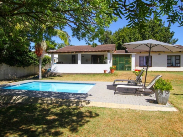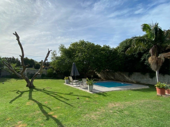 This property boasts an enviable location, just a leisurely stroll away from the pristine shores of Robberg Beach, offering immense potential for the discerning buyer. The main house, all on a single level, features three bedrooms including a master en-suite, two bathrooms, an entrance hall, and open-plan living and dining areas complemented by a separate kitchen and scullery.