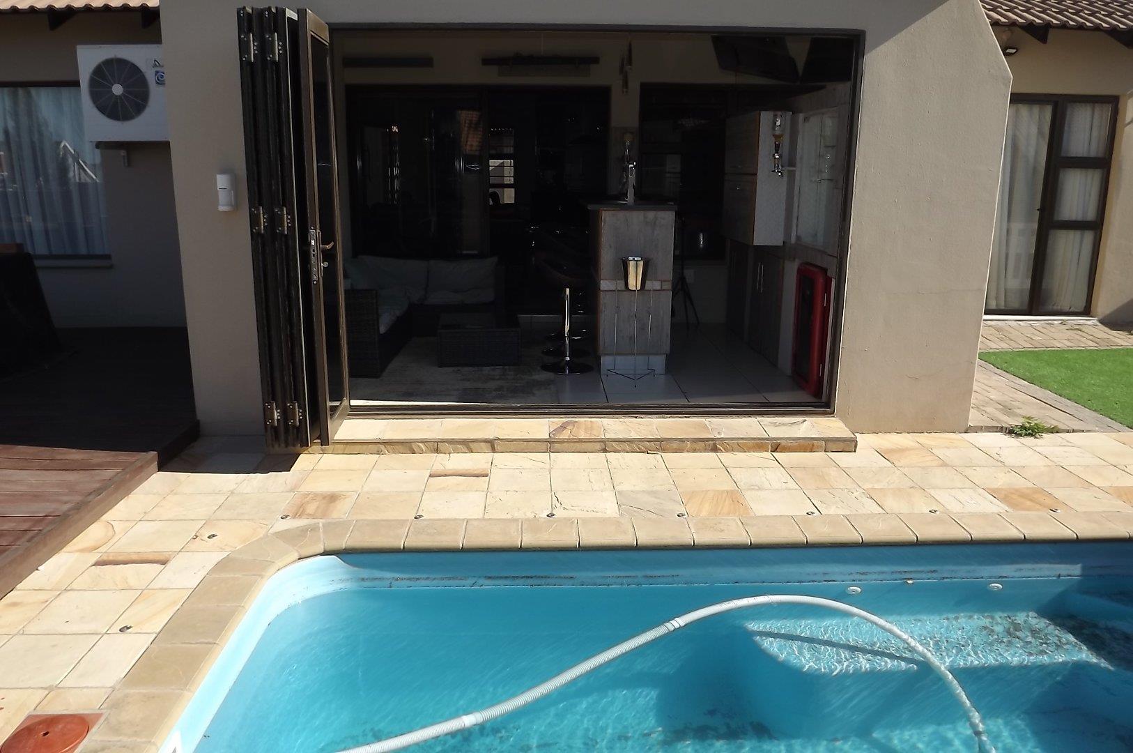 Discover the epitome of comfort in this immaculate 3 bedroom, 2 full bathroom duet nestled in the serene Northern Suburbs of Bloemfontein. Experience open-plan living at its finest, complemented by a built-in bar for entertaining guests. Dive into relaxation with a refreshing pool and unwind under the stars around your own boma with a cozy fire pit.