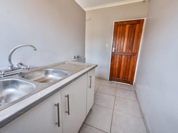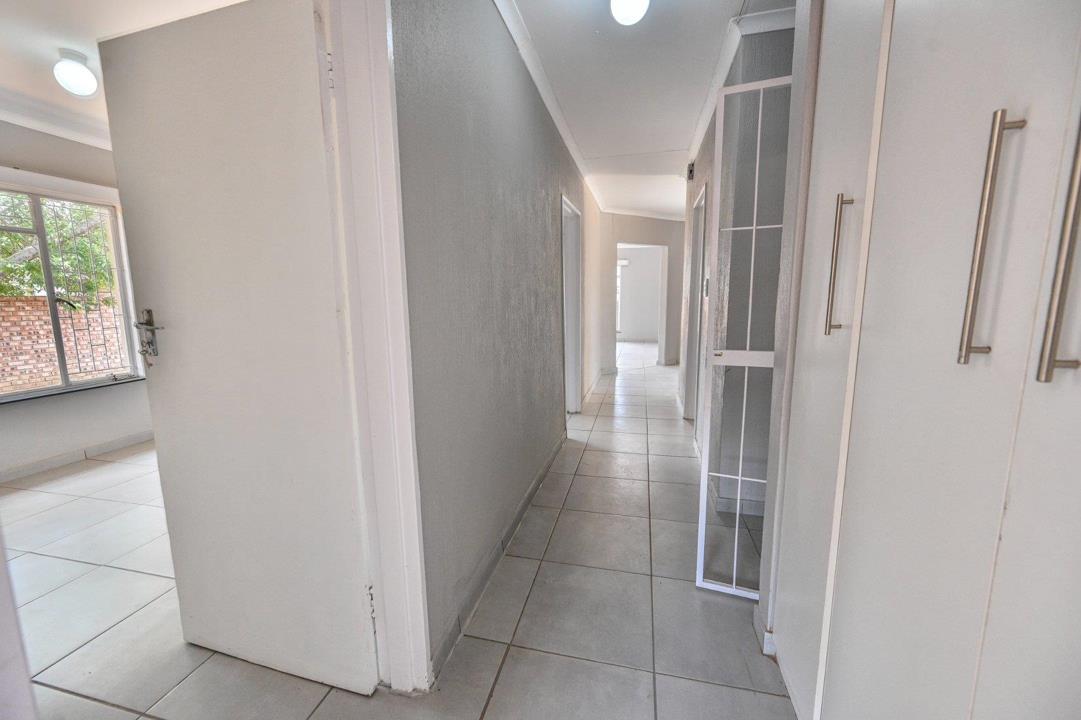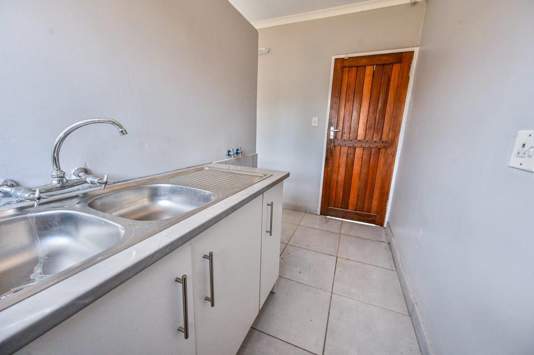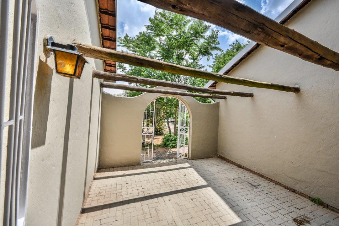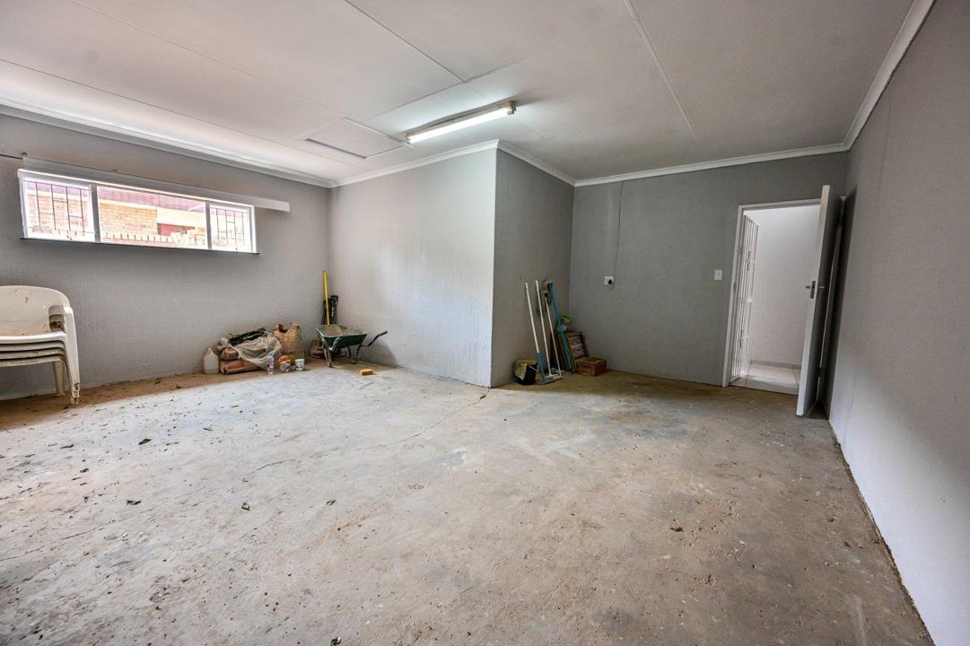Step outside to the garden, a blank canvas for creating a serene outdoor haven. Additional features include a double garage, top-tier security with burglar bars on all windows, a separate outside toilet, and a versatile storeroom.