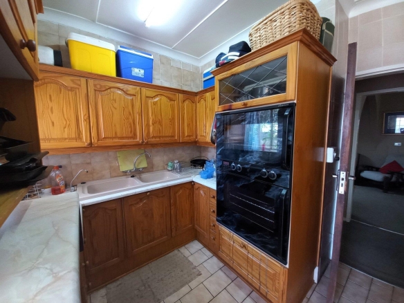 Welcome home to this charming 3-bedroom house with a spacious open-plan TV- and dining room, perfect for entertaining guests. The huge kitchen boasts ample counter space and storage, ideal for any aspiring chef.