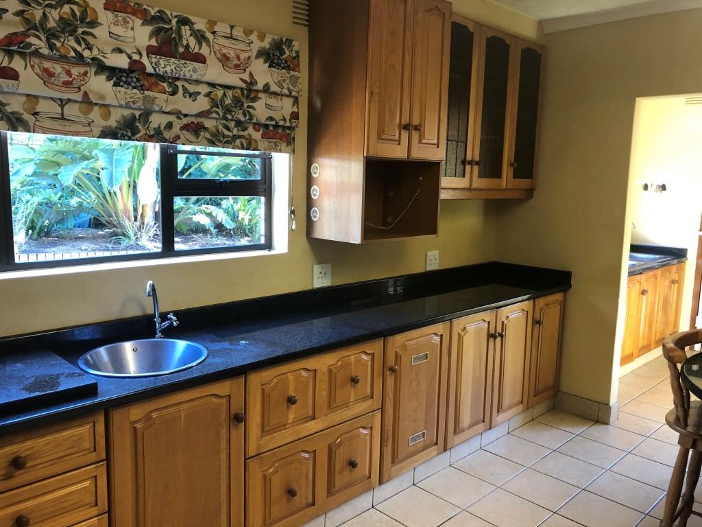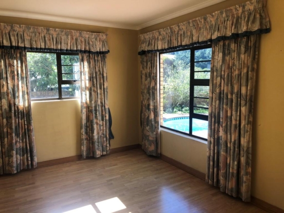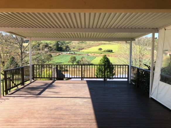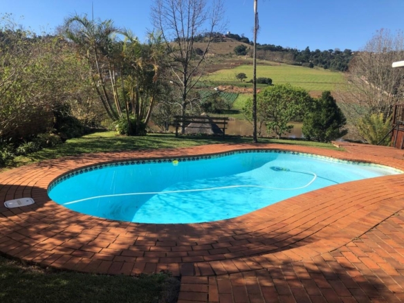 Calling all nature lovers, if you enjoy peace and tranquility then this is for you. Downstairs spacious lounge leading out onto a deck overlooking the magnificent garden and dam. Enjoy the wildlife roaming on the property. The kitchen is fitted with granite counter tops. Separate scullery and pantry. Upstairs you will find 3 bedrooms all with ensuite bathrooms. Second lounge with a deck. Sparkling pool. Garage and carport. Alarm. Small pets may be allowed with permission. Excluding water and lights. Sparkling pool.