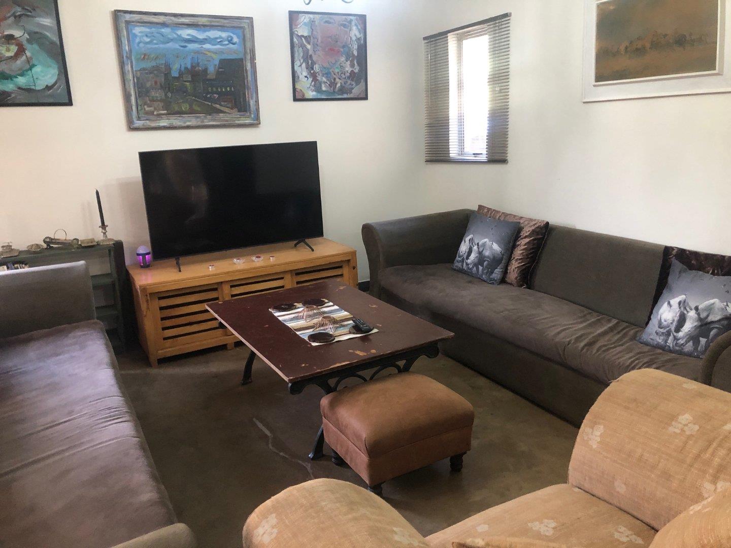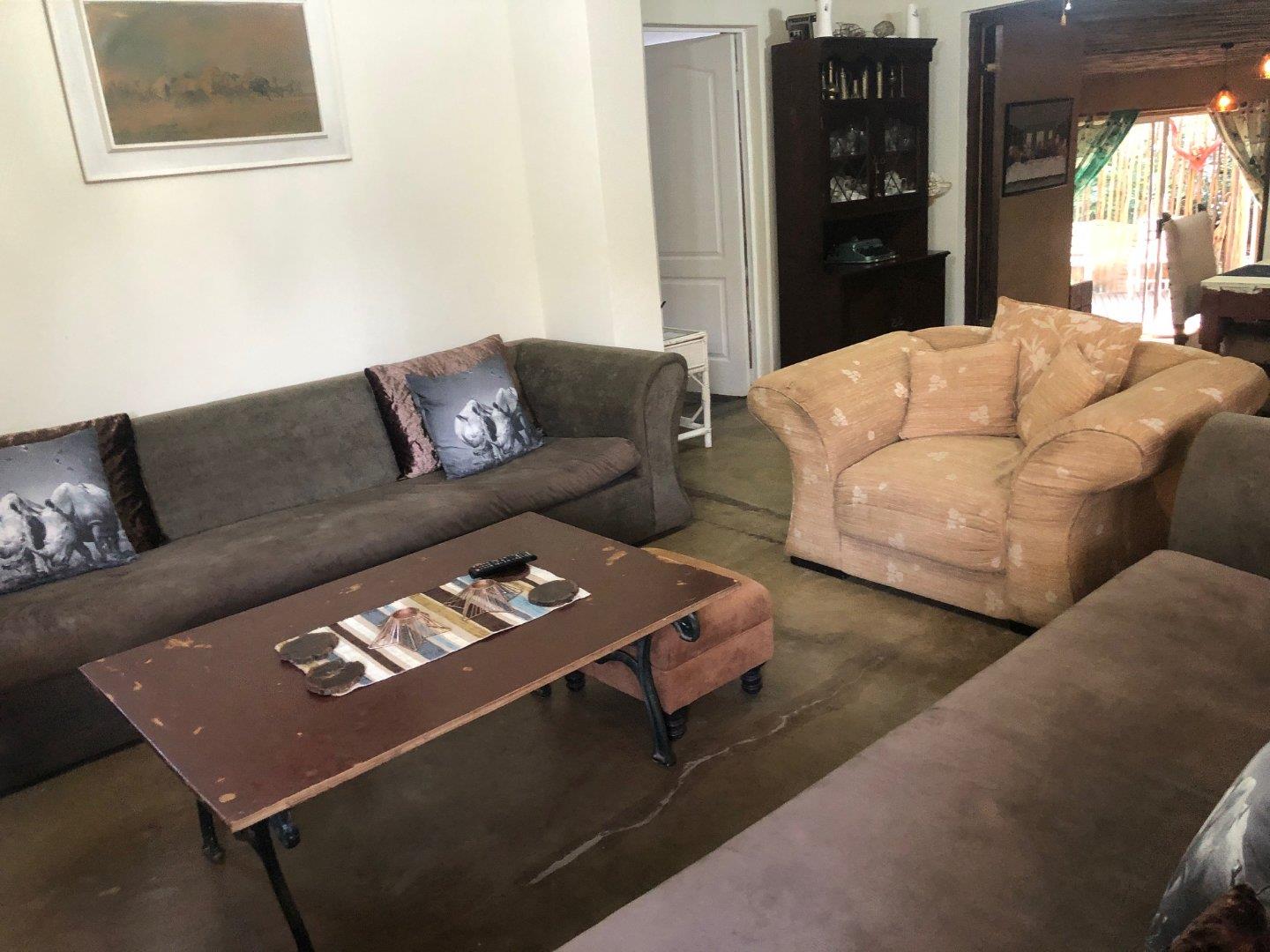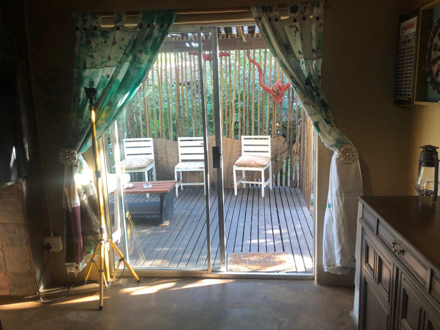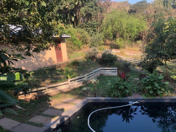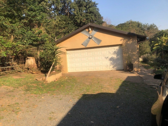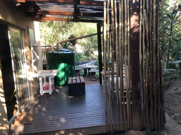 If you are looking to be amongst birdlife and tranquility then look no further. This home creates the feeling of a bush lodge with all the convenient features. Open plan lounge and dining area. Kitchen is fitted with cupboards and plumbed for a washing machine and dishwasher. 3 Bedrooms all with built in cupboards. The main bedroom leads out to a deck overlooking the pool. 2 Bathrooms, main ensuite. There is a built in braai with a covered area to enjoy cocktails and converse with guests. Pool and spacious garden. Double garages. Gas geyser. Pets allowed. Includes wifi uncapped and gardener. Shared property but completely fenced off.