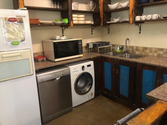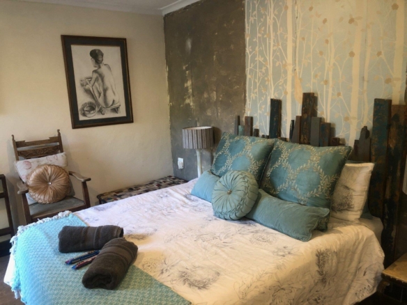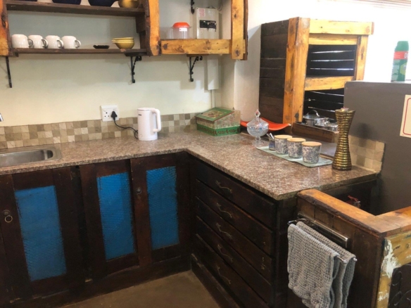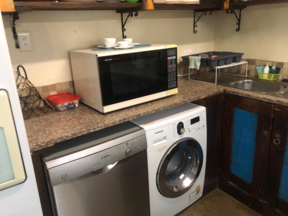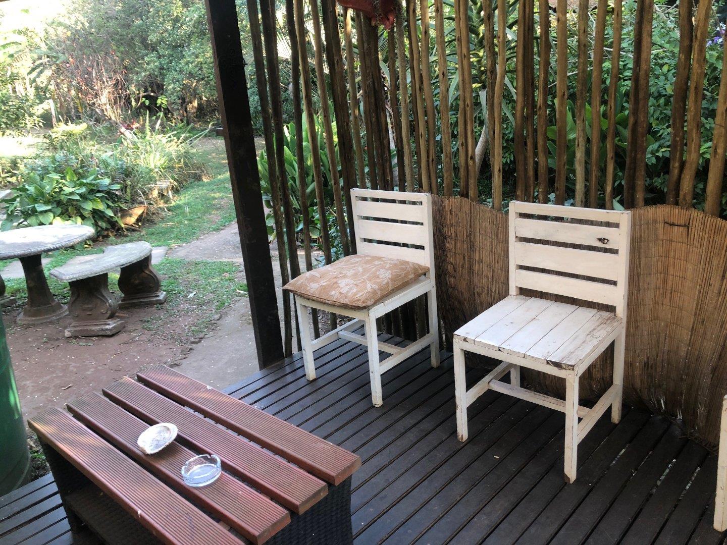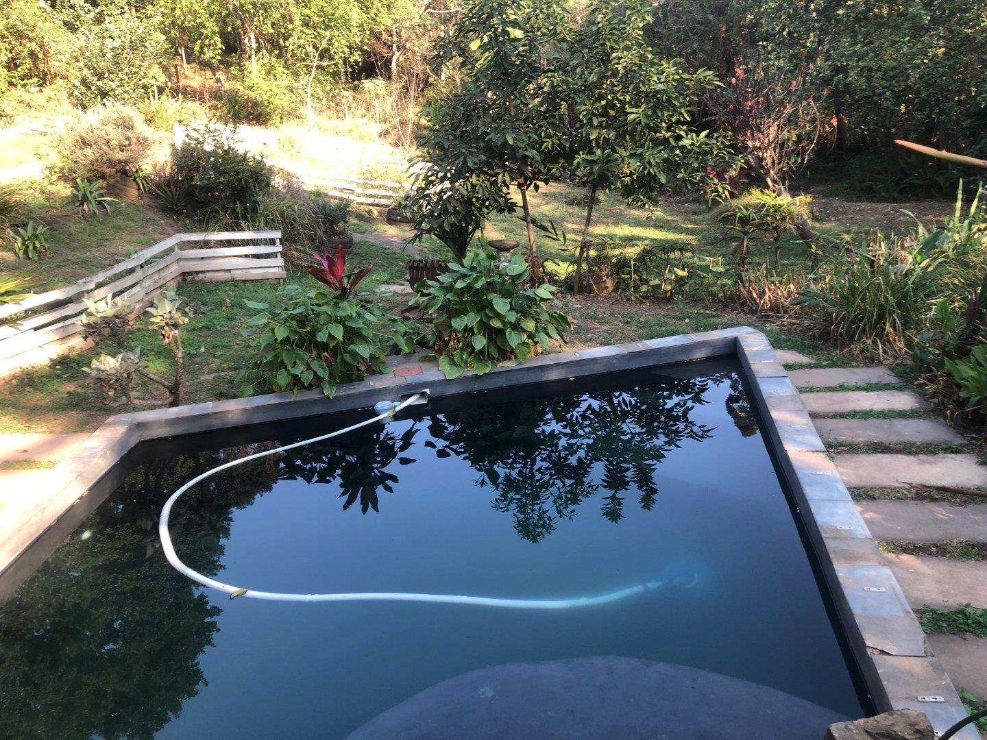 If you are looking to be amongst birdlife and tranquility then look no further. This home creates the feeling of a bush lodge with all the convenient features. Open plan lounge and dining area. Kitchen is fitted with cupboards and plumbed for a washing machine and dishwasher. 3 Bedrooms all with built in cupboards. The main bedroom leads out to a deck overlooking the pool. 2 Bathrooms, main ensuite. There is a built in braai with a covered area to enjoy cocktails and converse with guests. Pool and spacious garden. Double garages. Gas geyser. Pets allowed. Includes wifi uncapped and gardener. Shared property but completely fenced off.