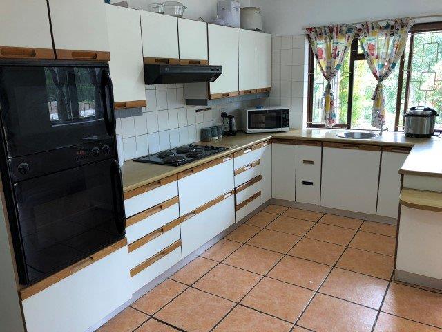 3 Bedroom house to let in Kloof. Easy access to the schools. This house boasts a very spacious lounge, dining and kitchen. Fully fitted kitchen, including built in electric stove and eye level oven, breakfast nook and plumbing for washing machine and dishwasher. The lounge is fitted with a fire place, and leads out onto an enclosed patio. Three comfortable bedrooms all with built in cupboards, main bedroom has en-suite with a shower. Full family bathroom. One lock up garage. This is a shared property with the landlord in the cottage. Electricity is prepaid. Unfortunately no pets allowed.