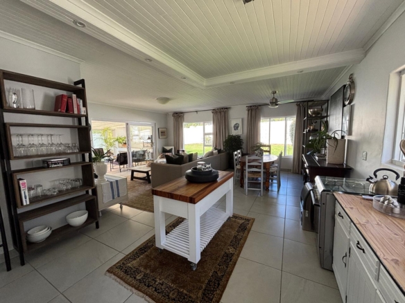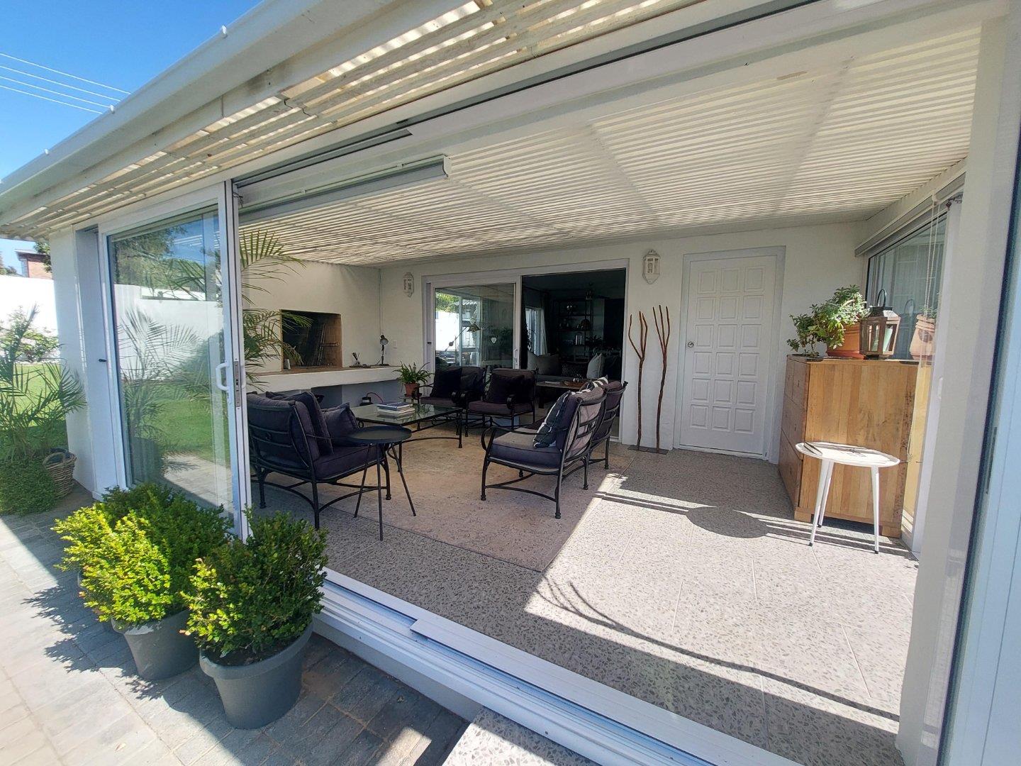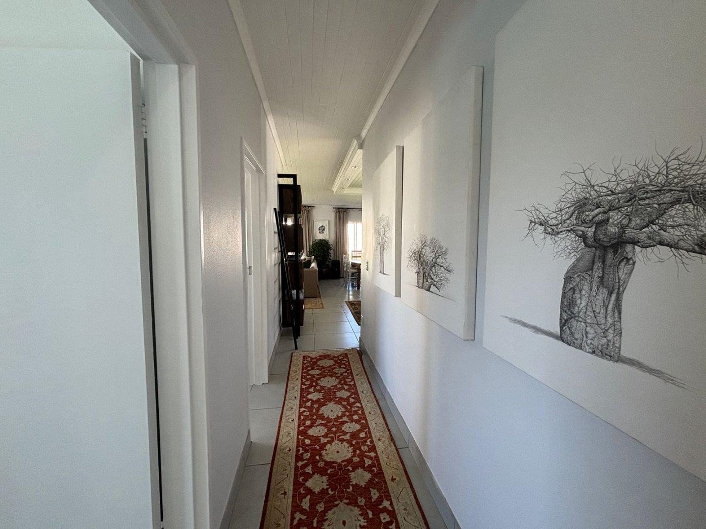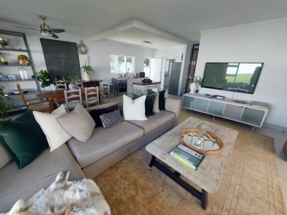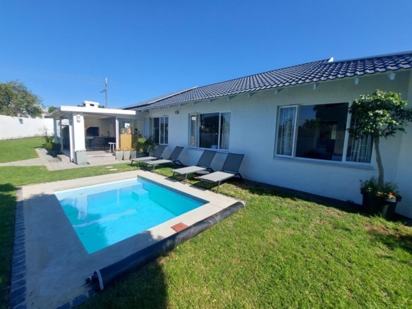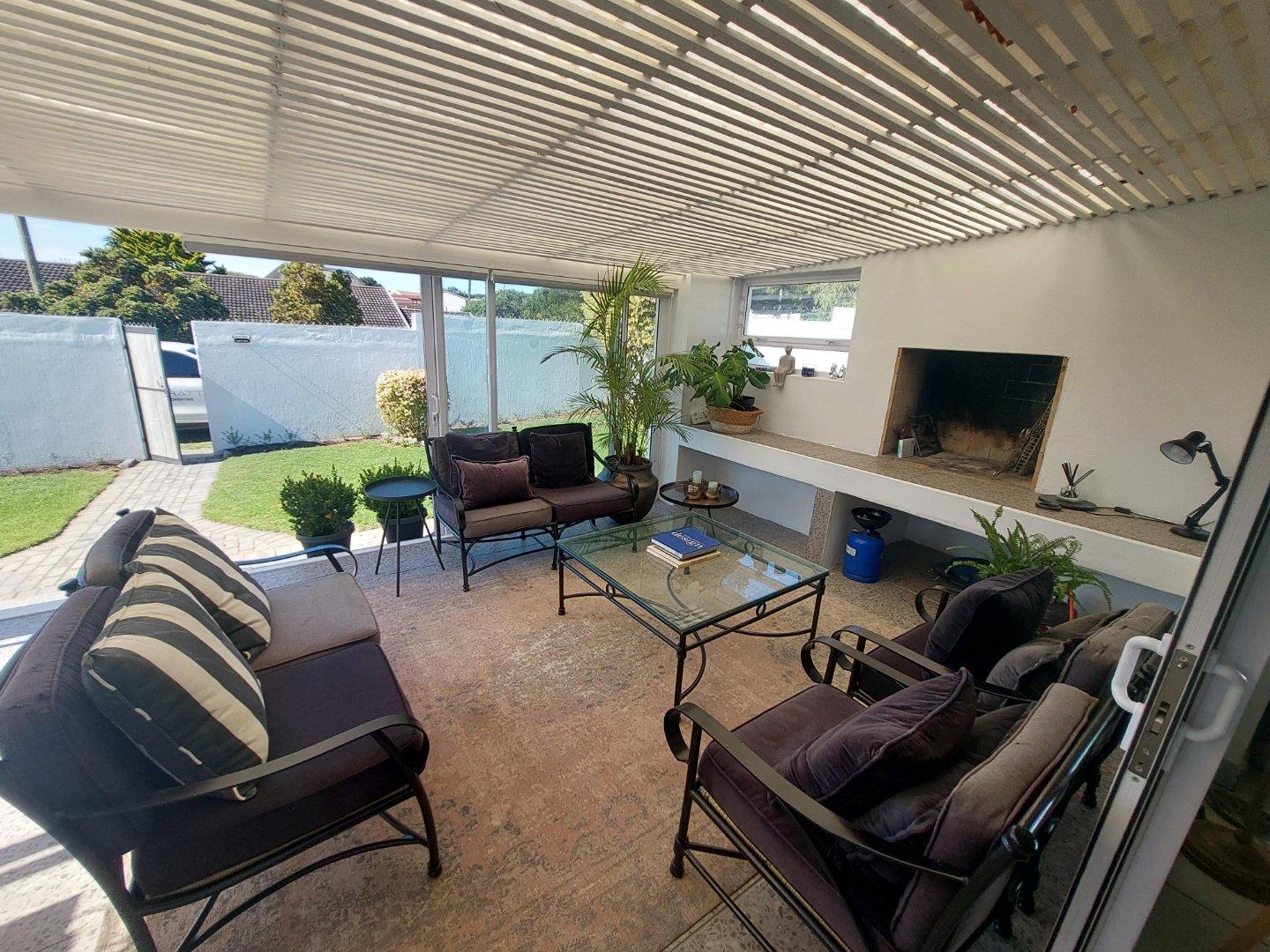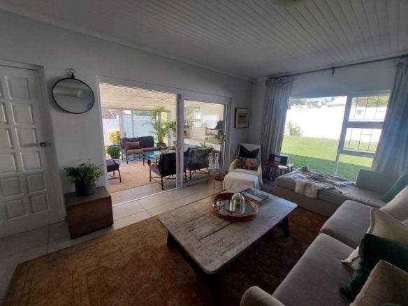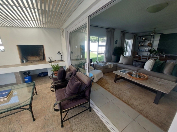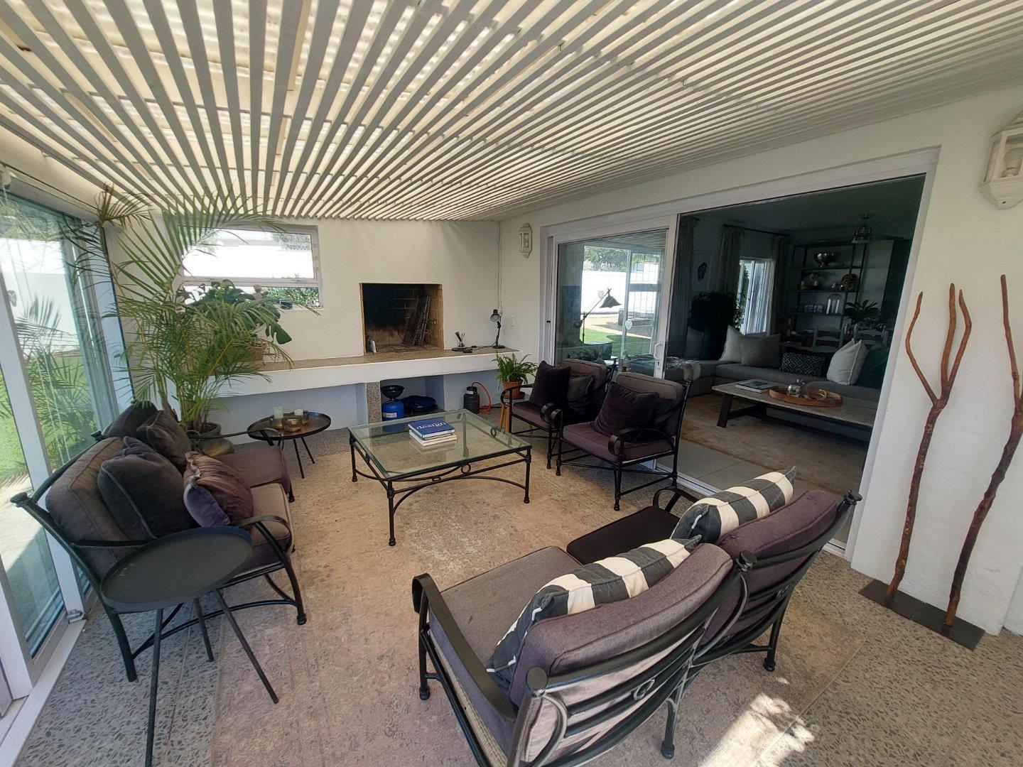 The home boasts an enclosed patio with glass sliding doors and a large built in braai for all weather entertaining and a very spacious garden.