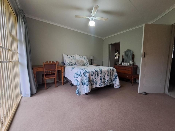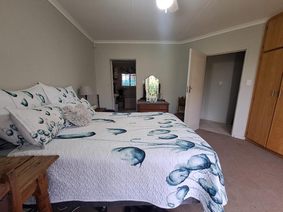 The main bedroom features an elegant en-suite, while all bedrooms are fitted with quality built-in cupboards. The open-plan kitchen, complete with a built-in stove and oven, flows effortlessly into the spacious living area, where sliding doors open onto a charming, low-maintenance garden.