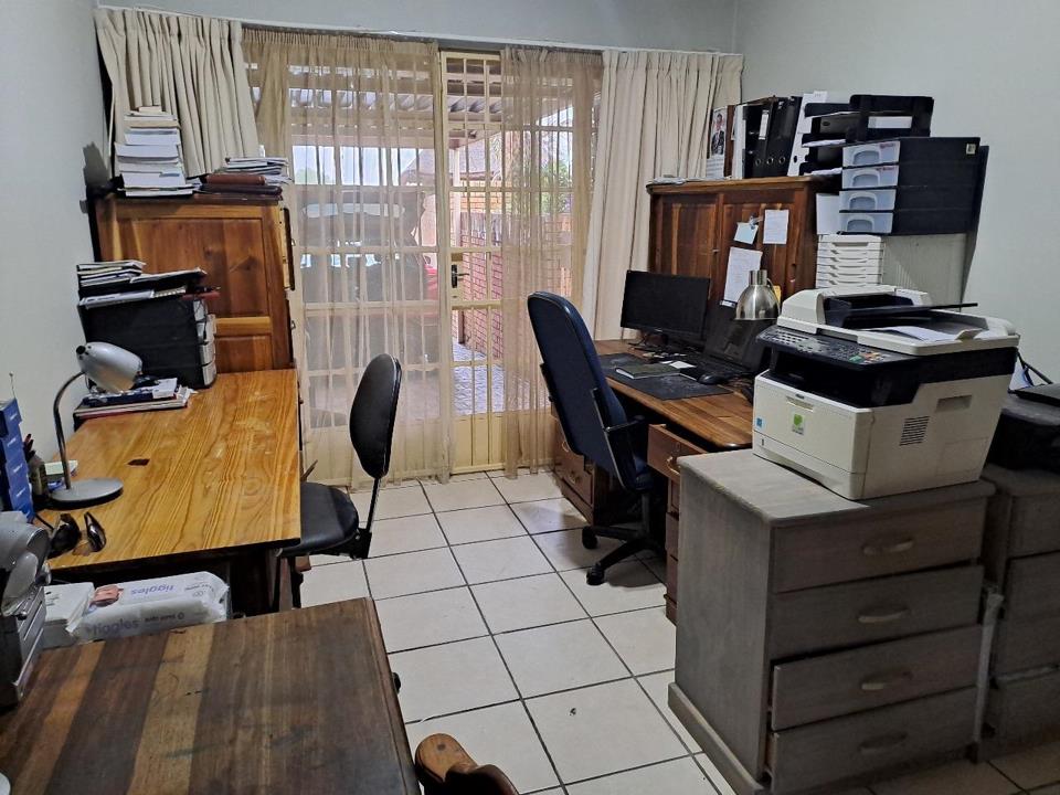 A lock-up garage with direct access ensures convenience and security, while the second garage has been converted into a versatile space – ideal as a home office or study. A double carport provides additional covered parking.