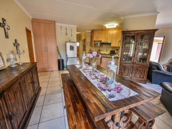Featuring a secure double garage and a lush, low-maintenance private garden, this home is designed for easy living. The garden boasts a built-in braai, ideal for entertaining in a serene setting. Inside, a spacious family room flows seamlessly into the open plan dining area, creating a warm, inviting atmosphere.