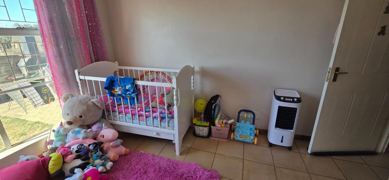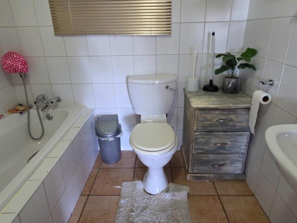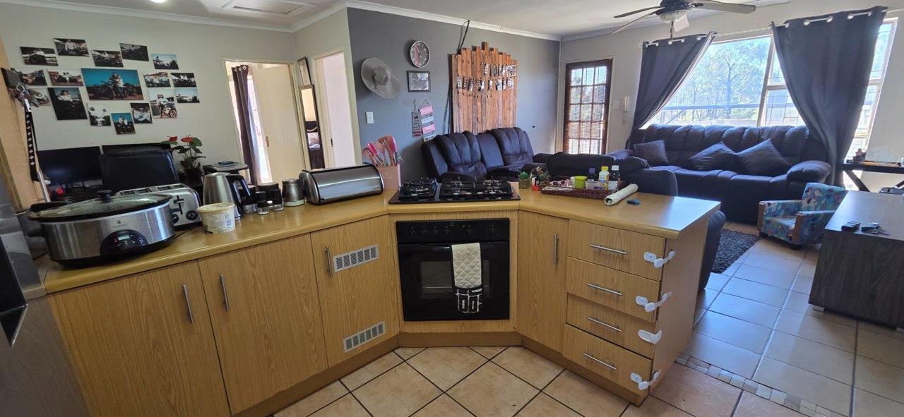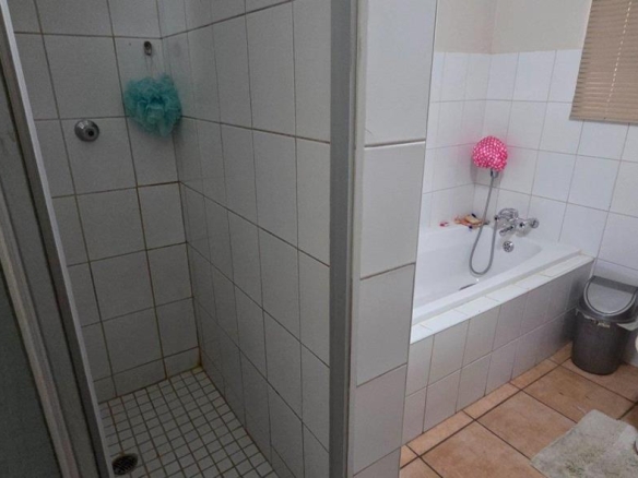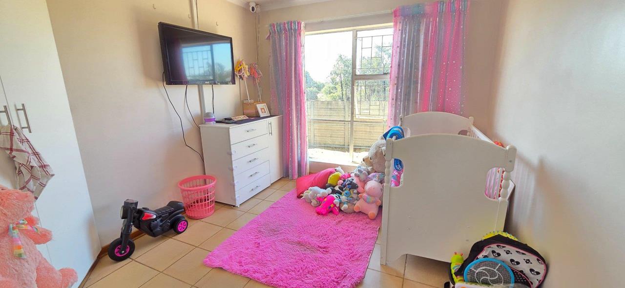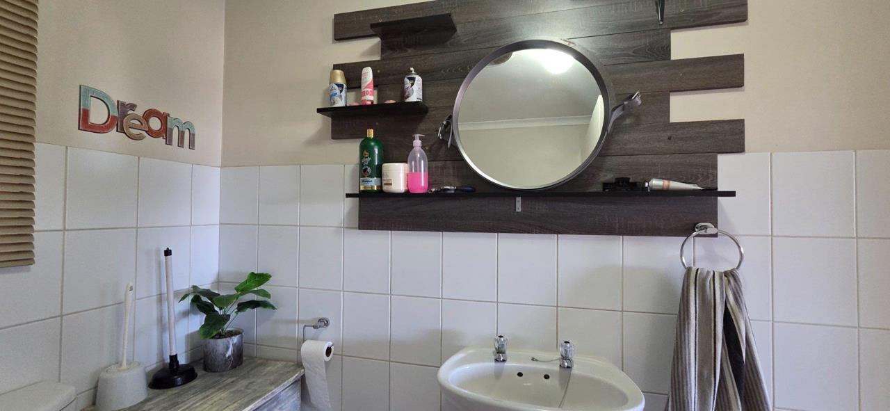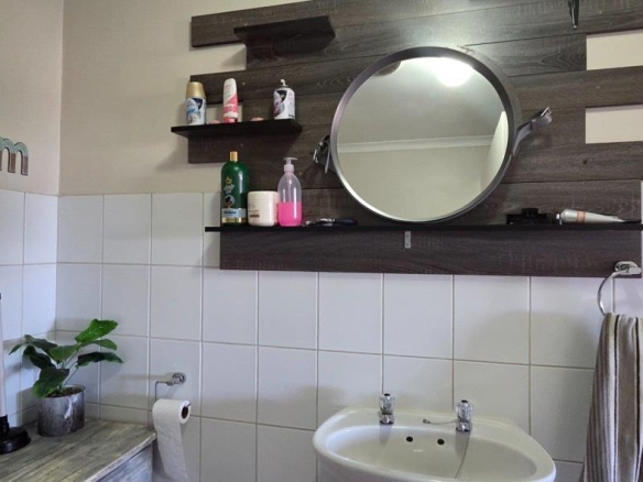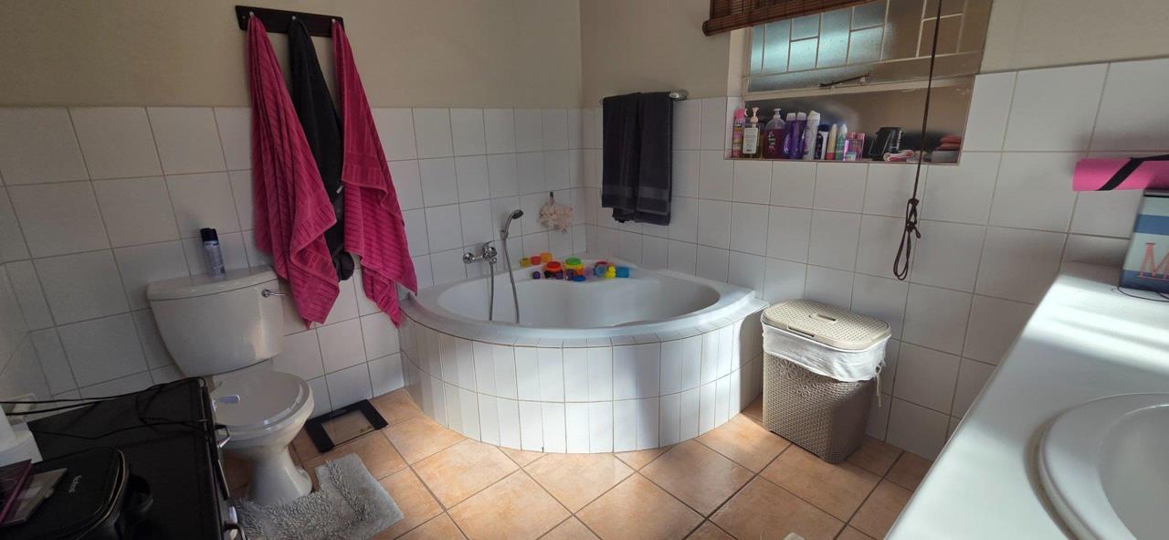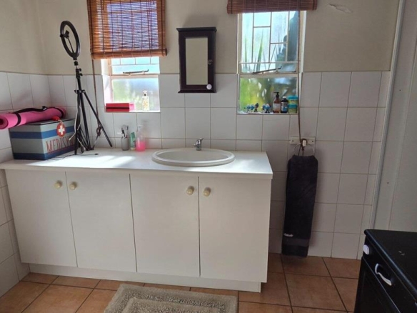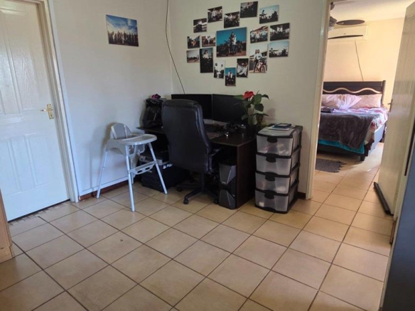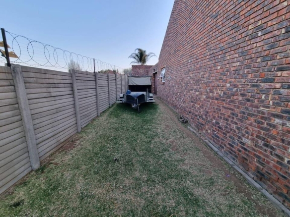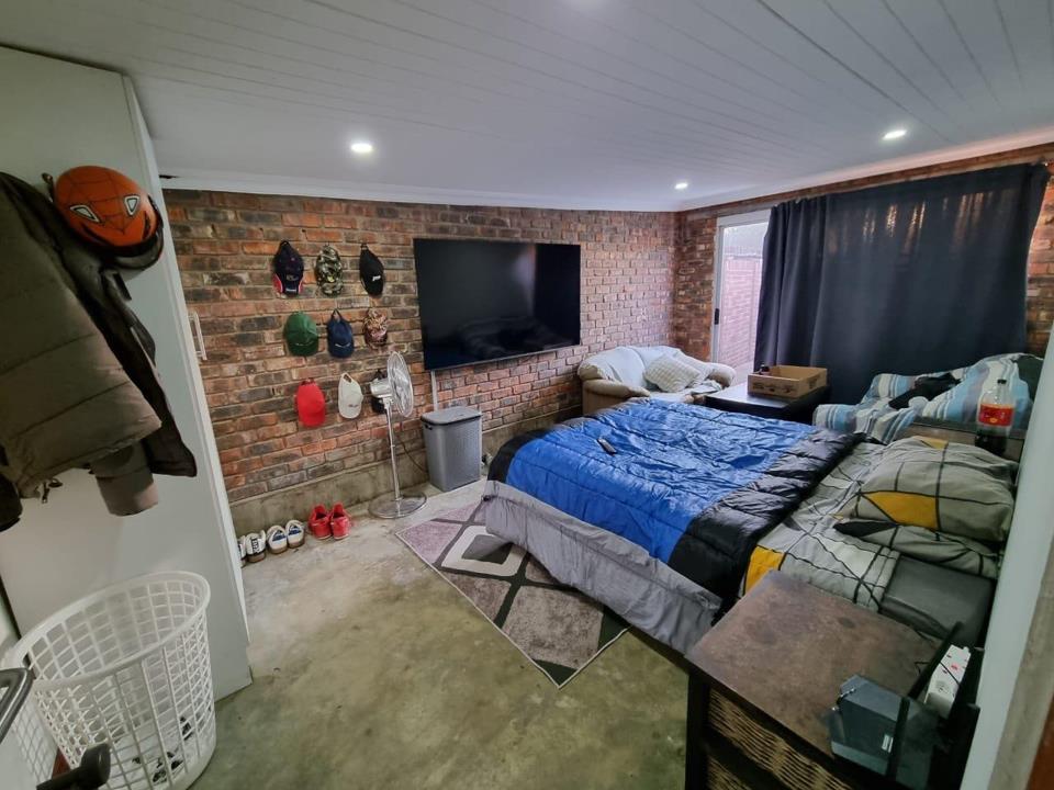 The double garage has been cleverly converted into a third bedroom, featuring sliding doors and built-in cupboards. In addition, the home features a single garage with extra storage space, as well as secure parking for approximately four vehicles behind an electric gate. Large garden with ample space to entertain family.