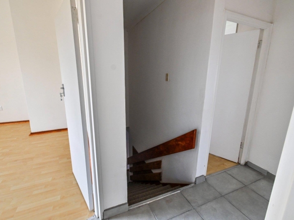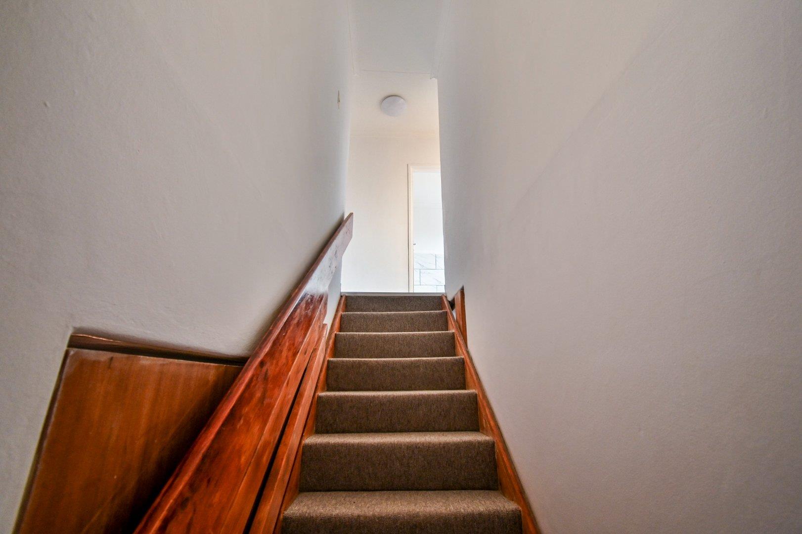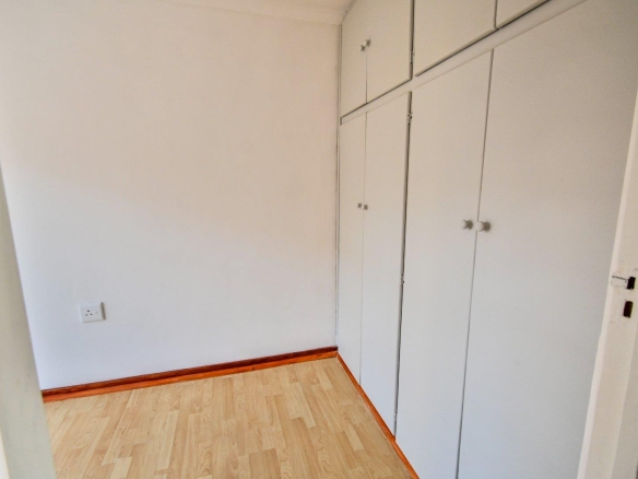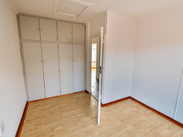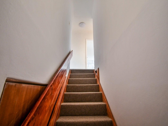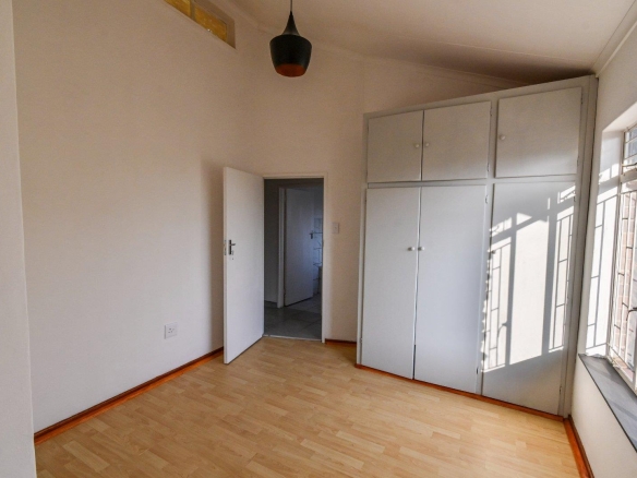 Heading upstairs via the charming wooden staircase, you’ll discover three spacious, light-filled bedrooms. Each bedroom boasts beautiful laminated floors and an abundance of built-in cupboards, providing ample storage for your personal items.