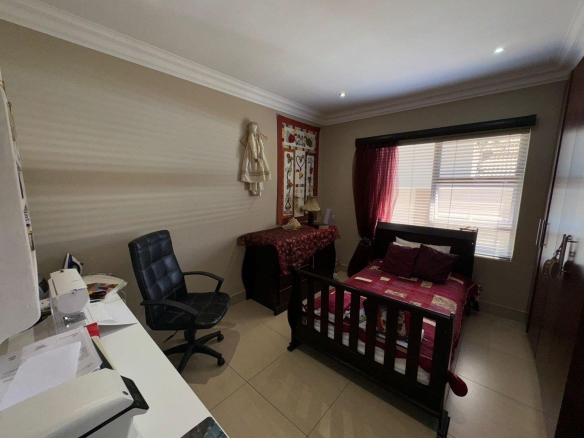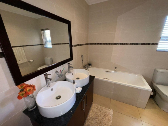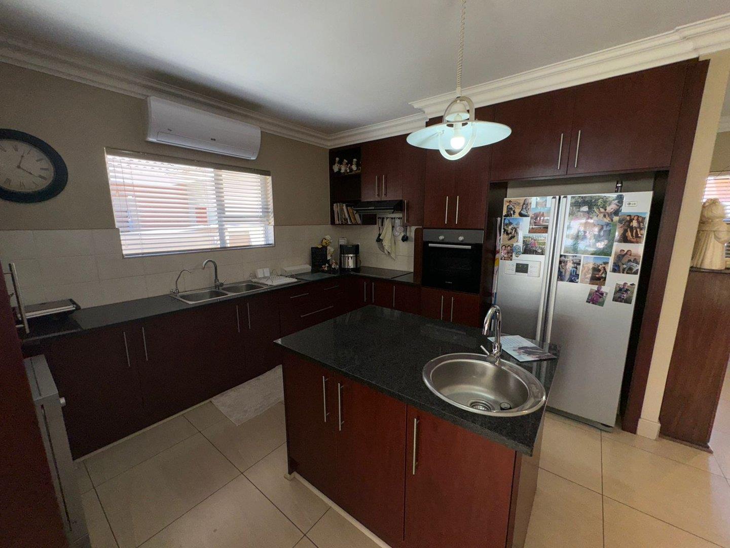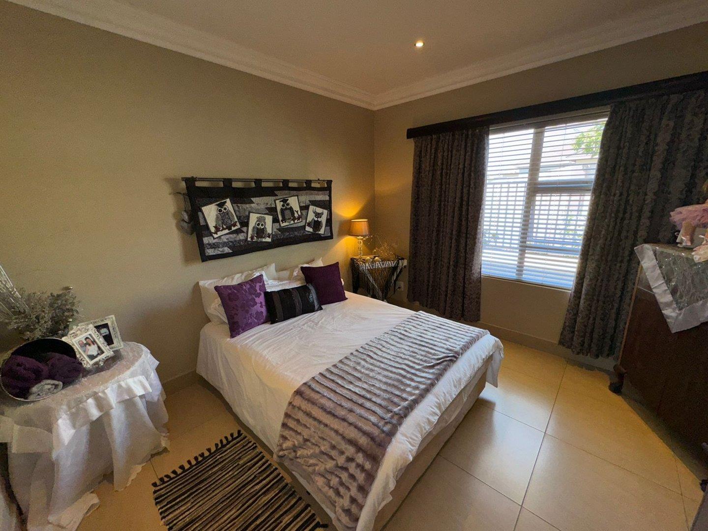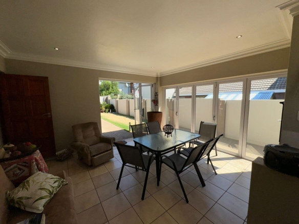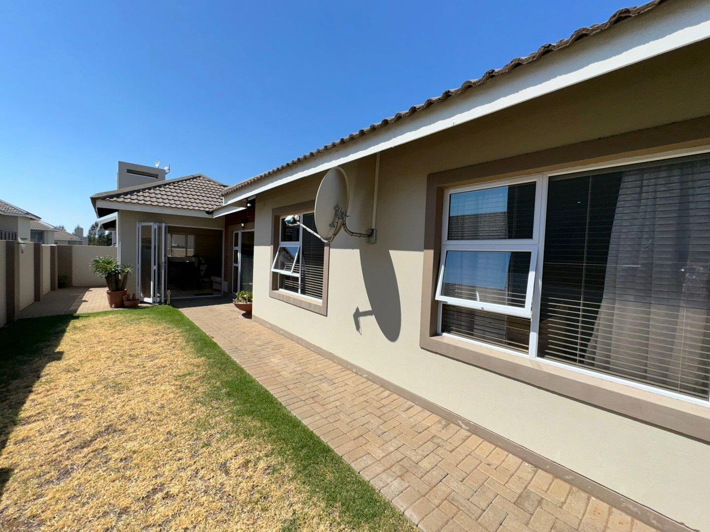 Entertain with finesse in the expansive open-plan dining room and lounge area, seamlessly merging style and functionality. Delight your culinary senses in the gourmet kitchen, replete with ample workspace and a chic centre island, inspiring culinary creativity at every turn. Elevating the art of al fresco gatherings, discover the spacious braai room adorned with stack-away doors, a sanctuary for socializing and creating cherished memories. Parking dilemmas are a thing of the past with double garages and a single shade port ensuring ample secure space for visitors’ vehicles. Embrace the serenity of nature in the garden, offering a tranquil oasis amidst urban living. Some extras to take note of are pre-paid water and electricity, an aircon in the main bedroom and a heat pump on the geyser to save on electricity.