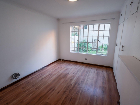 The bathroom is a spa-like oasis, featuring a bath, shower, toilet, and basin for your comfort and convenience. Both bedrooms are graced with elegant, laminated flooring and an abundance of built-in cupboards, ensuring a clutter-free environment.