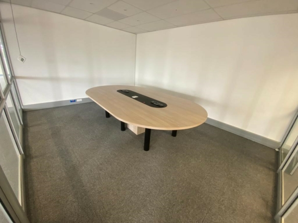 Spacious Meeting Room: The meeting room comes with an oval boardroom table, perfect for hosting meetings, presentations, and discussions, providing a comfortable and professional setting.