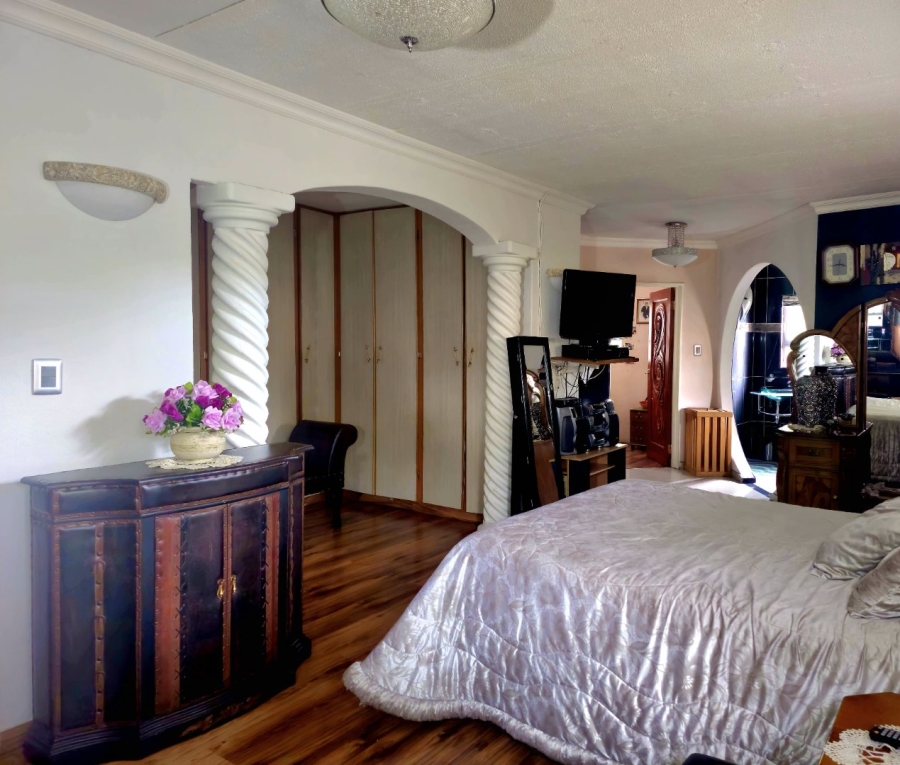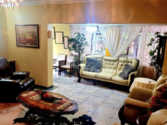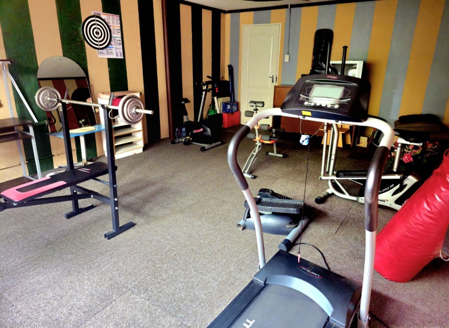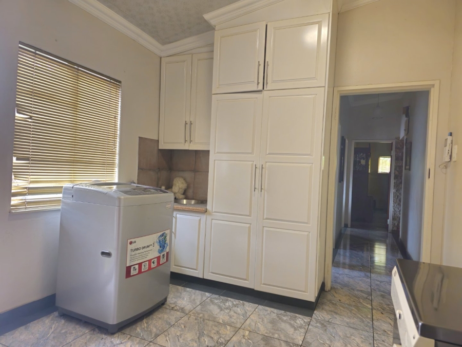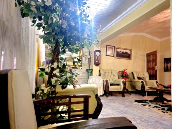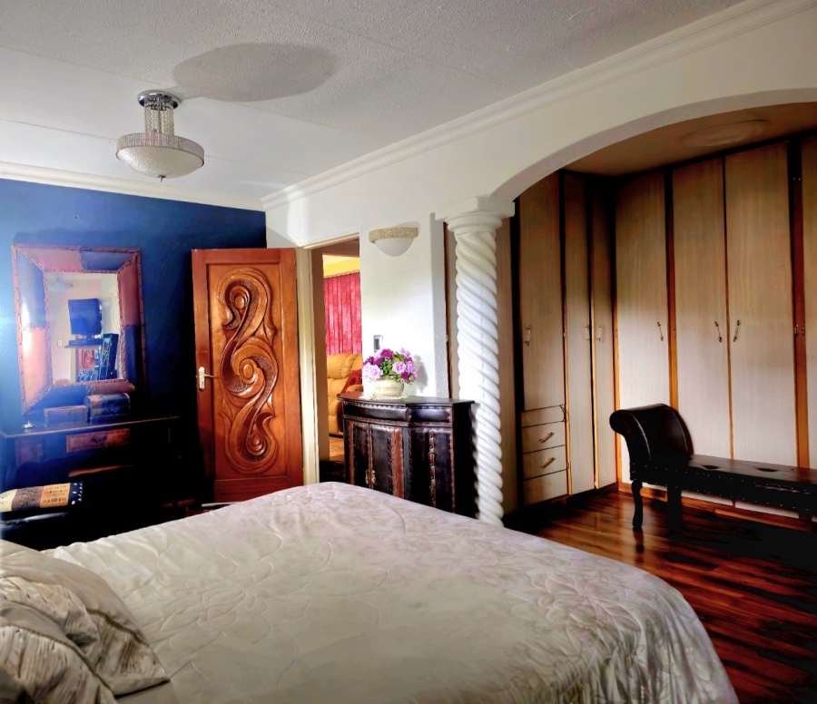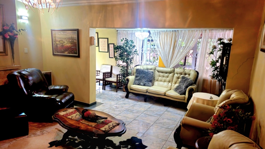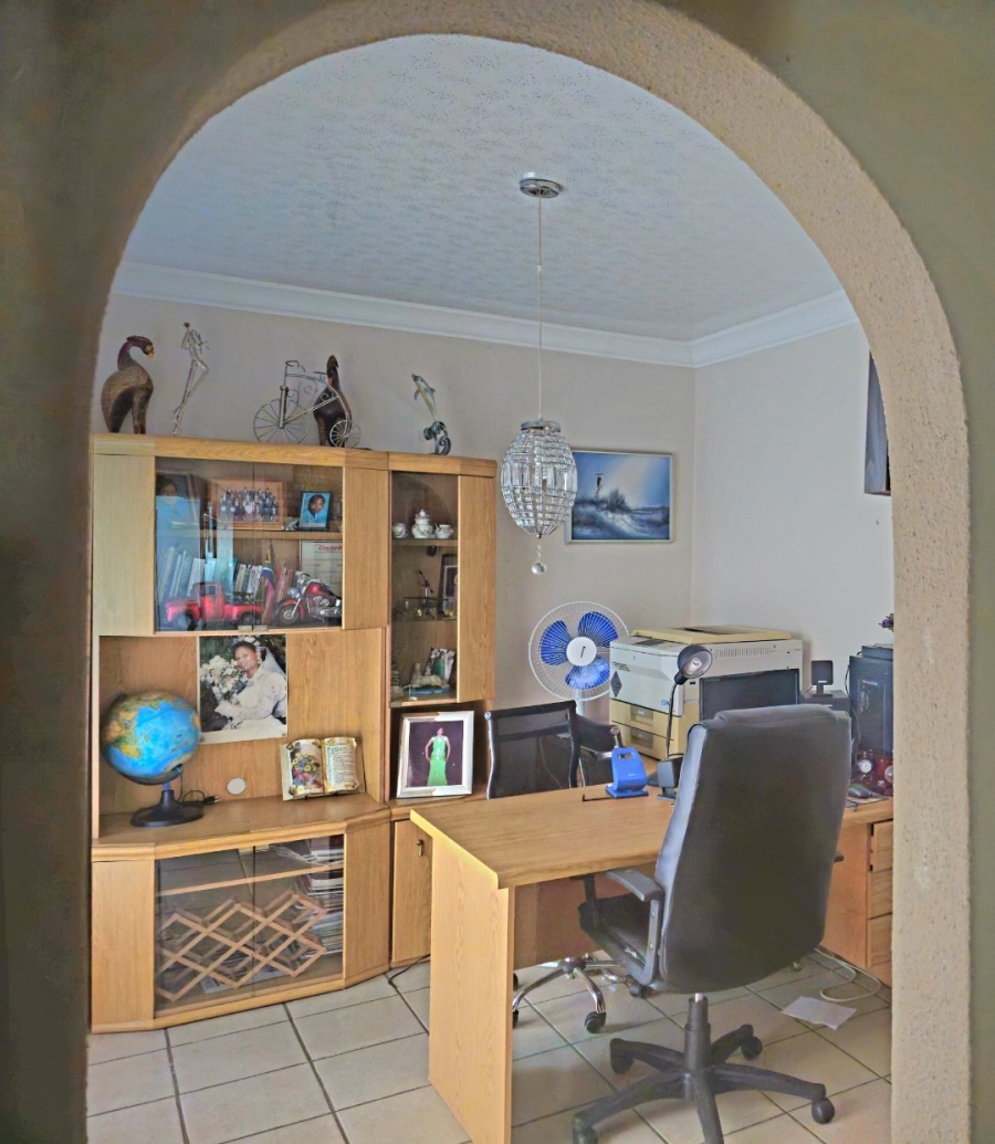 This spacious and well-appointed home offers exceptional comfort and style, featuring an inviting entrance hall that leads into two expansive lounges and a cozy TV room. Perfect for both relaxation and entertaining, the dining room adds to the home’s charm. There are two studies, ideal for home offices or private spaces. Burglar bars and a security gate, you can enjoy peace of mind. The property also includes three garages, a paved driveway, and durable face brick walls. The home boasts four generously sized bedrooms and four bathrooms, ensuring ample space for family and guests. A domestic helper’s room provides added convenience. For outdoor living, the home offers a refreshing swimming pool and an entertainment area perfect for hosting gatherings. The fitted kitchen, with elegant granite countertops, is a chef’s dream. Additionally, a carport provides extra parking space. This home is a perfect blend of luxury, practicality, and security.