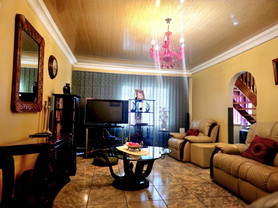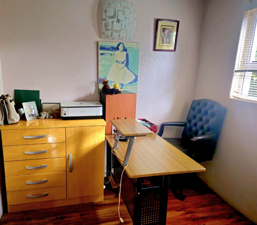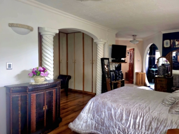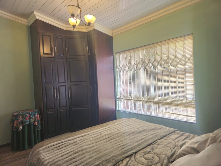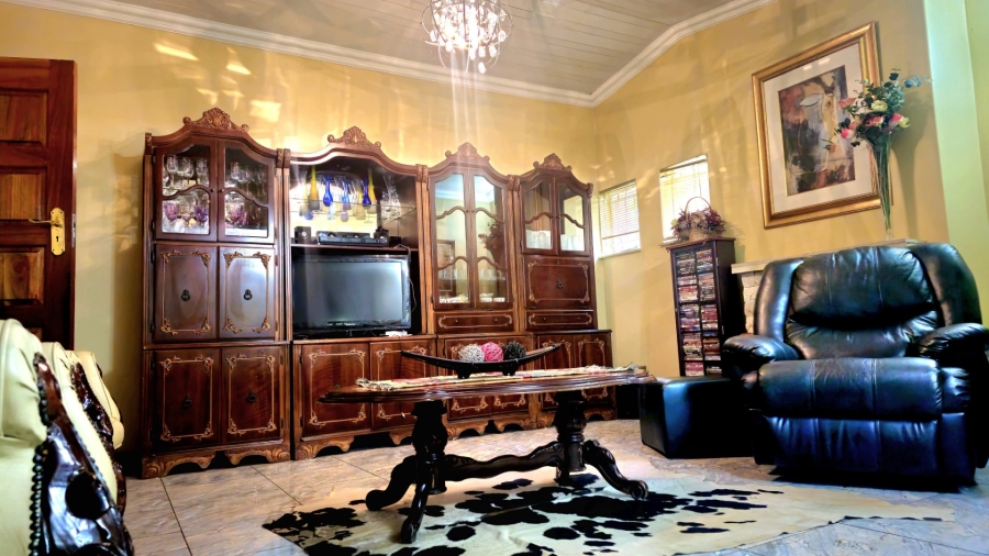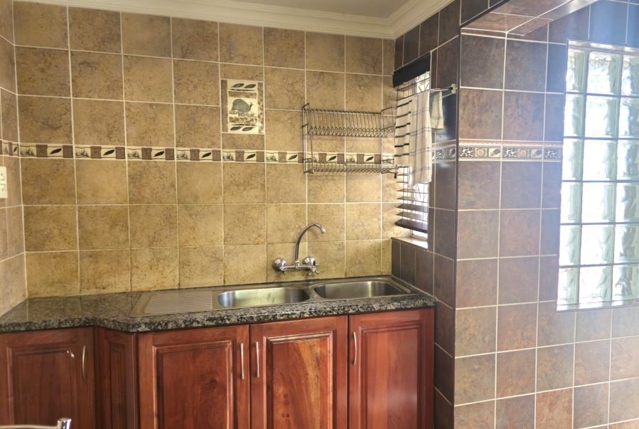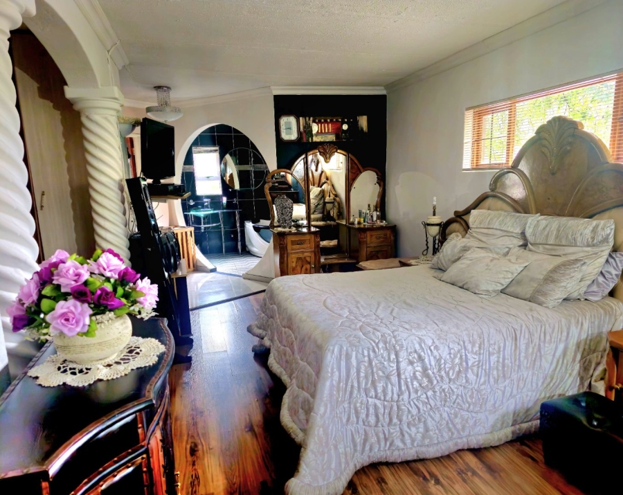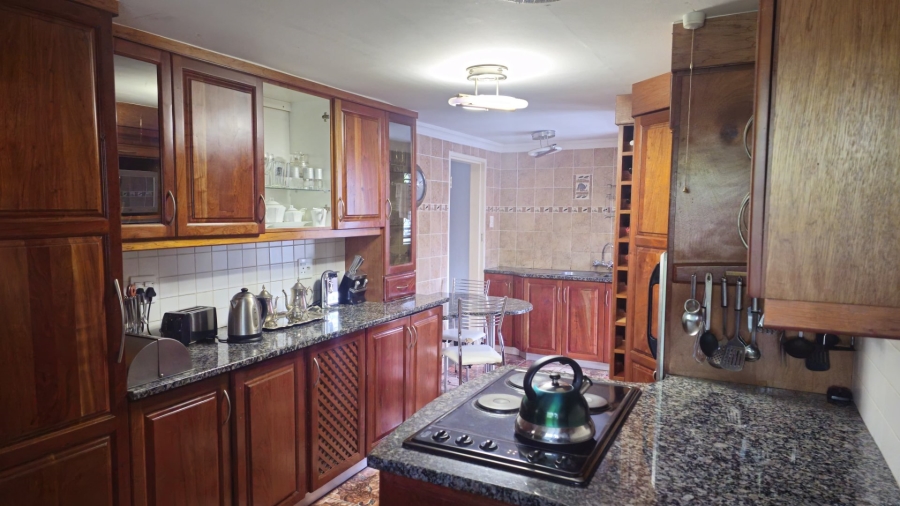 This spacious and well-appointed home offers exceptional comfort and style, featuring an inviting entrance hall that leads into two expansive lounges and a cozy TV room. Perfect for both relaxation and entertaining, the dining room adds to the home’s charm. There are two studies, ideal for home offices or private spaces. Burglar bars and a security gate, you can enjoy peace of mind. The property also includes three garages, a paved driveway, and durable face brick walls. The home boasts four generously sized bedrooms and four bathrooms, ensuring ample space for family and guests. A domestic helper’s room provides added convenience. For outdoor living, the home offers a refreshing swimming pool and an entertainment area perfect for hosting gatherings. The fitted kitchen, with elegant granite countertops, is a chef’s dream. Additionally, a carport provides extra parking space. This home is a perfect blend of luxury, practicality, and security.