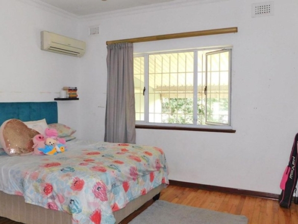 Located in the sought-after suburb of Durban North, this charming property presents an excellent opportunity for those looking to create their perfect family home. With three spacious bedrooms, two bathrooms, and two generously sized lounges, this home offers ample room to grow. Its unique character, highlighted by original Oregon flooring and high ceilings, awaits your personal touch to unlock its full potential. The kitchen is well-appointed with granite countertops, plenty of cupboard space, and plumbing for a dishwasher, making it both functional and stylish. The lounge area opens effortlessly onto the pool and lapa through sliding doors, creating an ideal space for entertaining. Additional features include air conditioning and modern downlighters. Set in a lush tropical garden, the property offers plenty of parking, including a single garage and a carport. There is also staff accommodation and a separate storeroom. Situated close to top schools and local amenities, this home is perfectly positioned for convenience. This spacious three-bedroom home with a large garden and entertainment area offers endless possibilities. Whether you’re looking for comfort, style, or a space to host, this property ticks all the boxes. Don’t miss out on this exceptional opportunity! Contact us today to arrange a viewing and start imagining the possibilities for your future home.