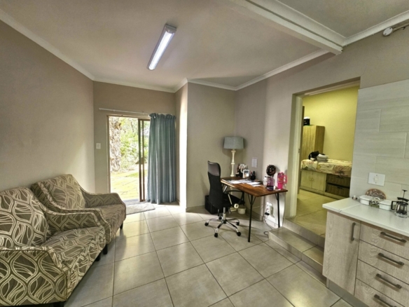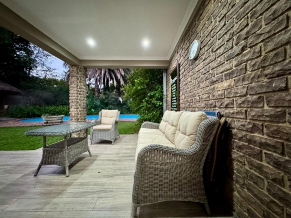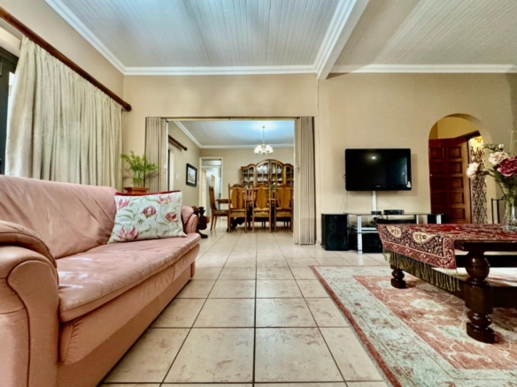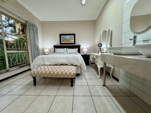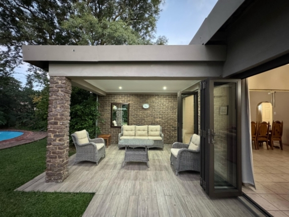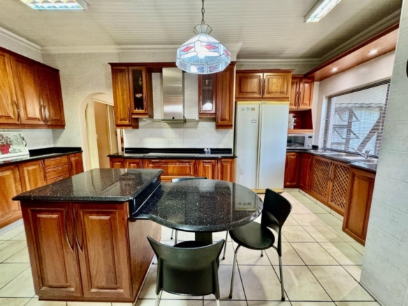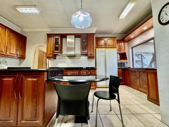 Dual Mandate. This spacious family home offers the perfect blend of comfort, convenience, and entertainment, boasting numerous features for modern living. The property is secured with a palisade fence and an electric gate, ensuring privacy and peace of mind. The large driveway leads to two garages, providing ample parking and storage space. The home is designed for both relaxation and entertainment, with a welcoming entrance hall that flows into a generous lounge and TV room. The dining room is ideal for family meals, while the study offers a quiet space for work or study. The open-plan layout extends to a modern fitted kitchen with a nook and a silver stap counter tops and a separate laundry room, ensuring practicality and ease of living. The four bedrooms are all generously sized, each with built-in cupboards. The master bedroom features an en-suite bathroom with a shower, toilet, and his\her basin for ultimate convenience. Bedrooms 2 and 3 share full bathrooms, with a bath, toilet, and basin, while bedroom 4 also boasts its own en-suite with a shower, toilet, and basin. For outdoor living, the home includes a spacious veranda that leads to a lapa and entertainment area, perfect for hosting guests. A sparkling swimming pool is situated in a manicure well-maintained garden, and a borehole provides water to keep the garden lush year-round. In addition, the property includes two separate flatlets, each offering a kitchen, living area, and 1 bedroom, making it ideal for guests, extended family. Currently has a rental income. This home truly offers everything a family could need, from functional living spaces to entertainment areas and ample parking, all within a secure and private setting.