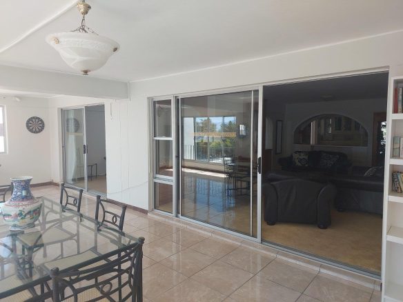 – Large enclosed balcony boasting big glass sliding windows as well as blinds