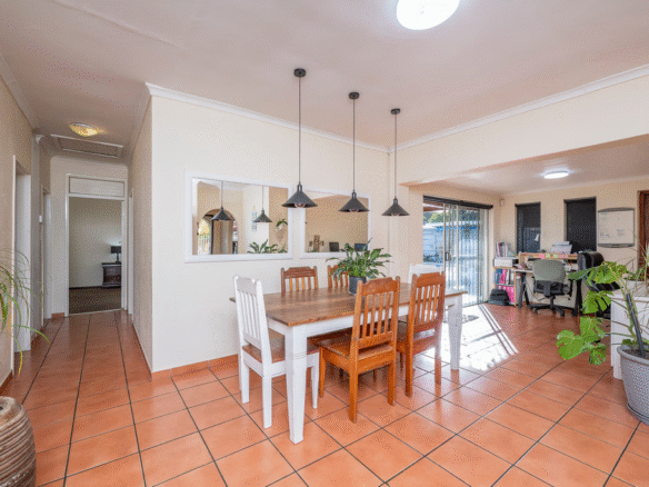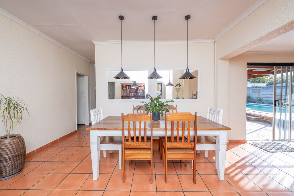 The other living areas like the Dining room that is adjacent to another open plan lounge (currently being utilised as office space) leading out to a large patio with built in braai and an amazing swimming pool, big enough have lots of fun in!