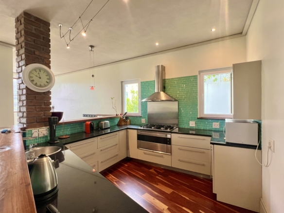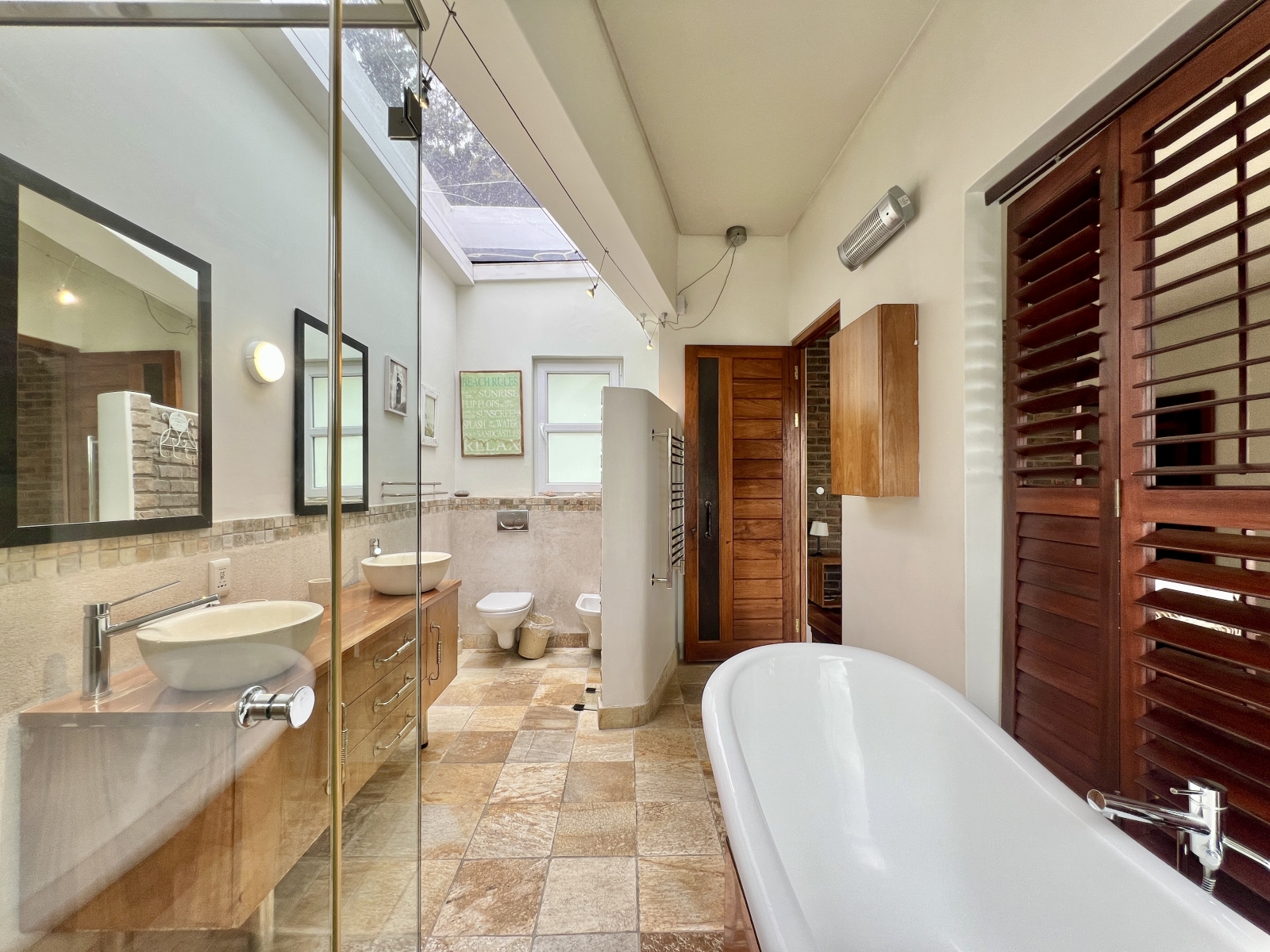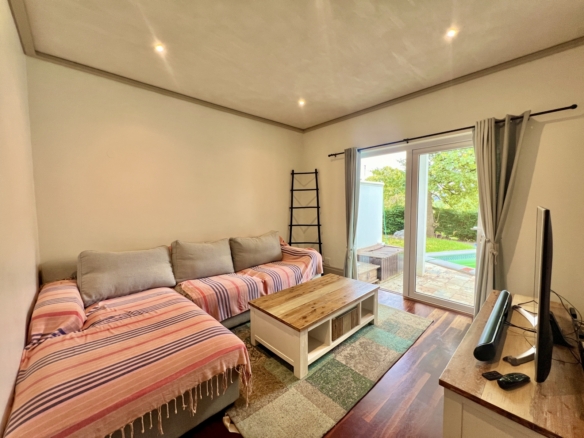 • Energy Efficiency: Outfitted with brand-new, European-standard double-glazed PVC windows and doors, the property offers superior insulation. An inverter system maintains functionality during load shedding, excluding the pool pump and oven. A solar geyser and borehole water supply for the pool and garden further enhance sustainability.