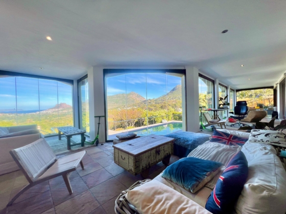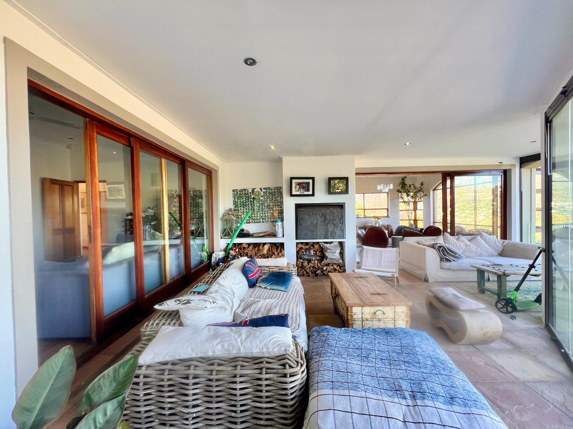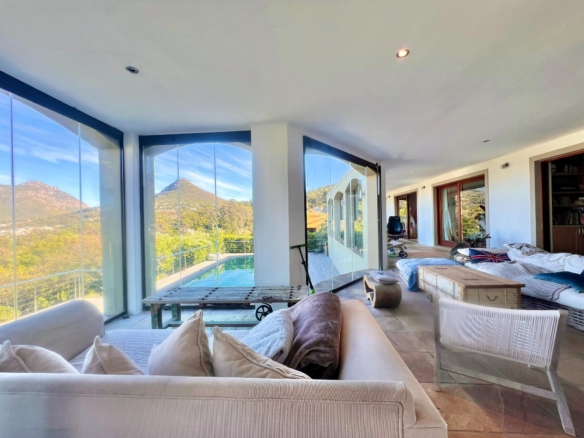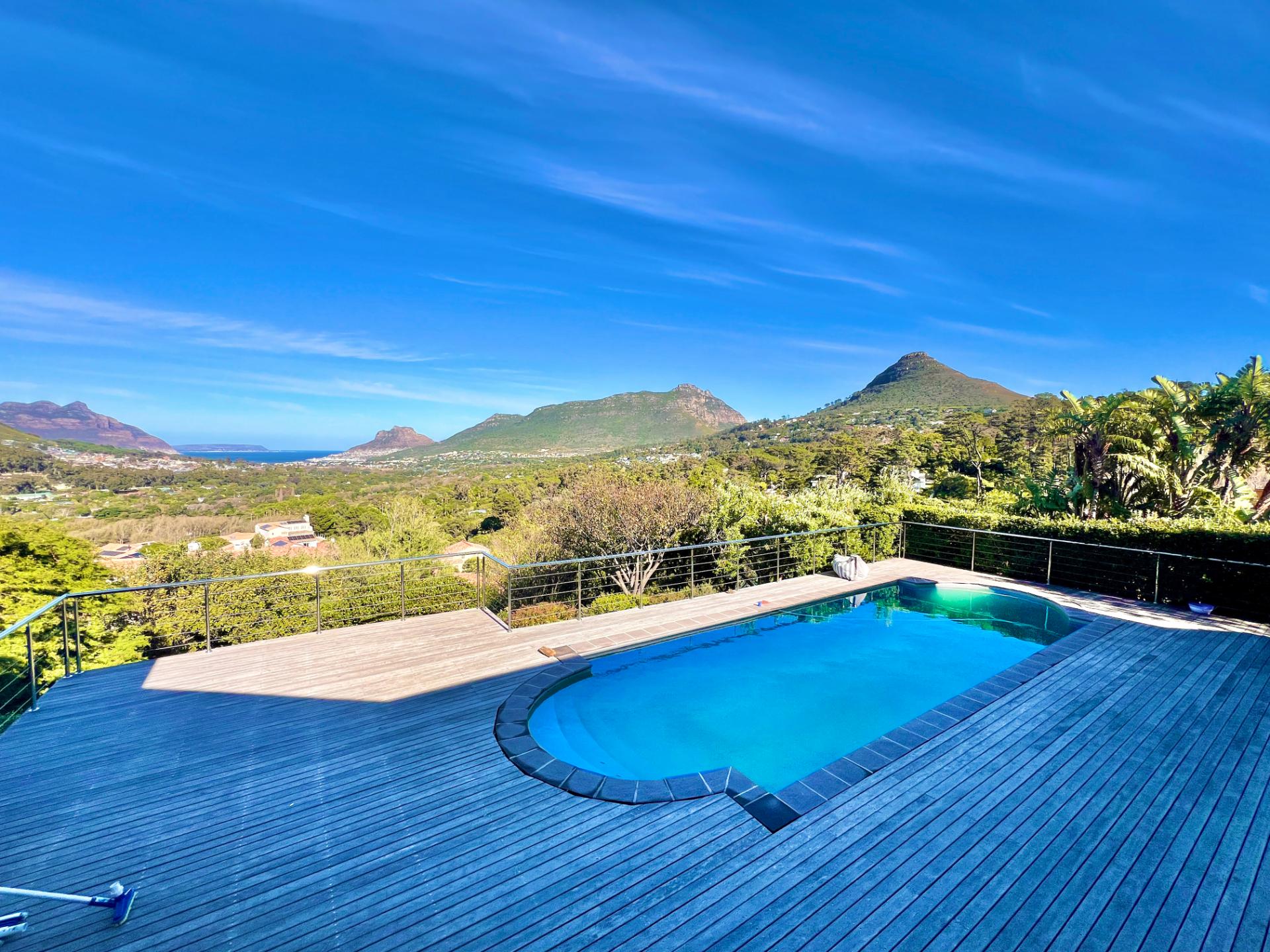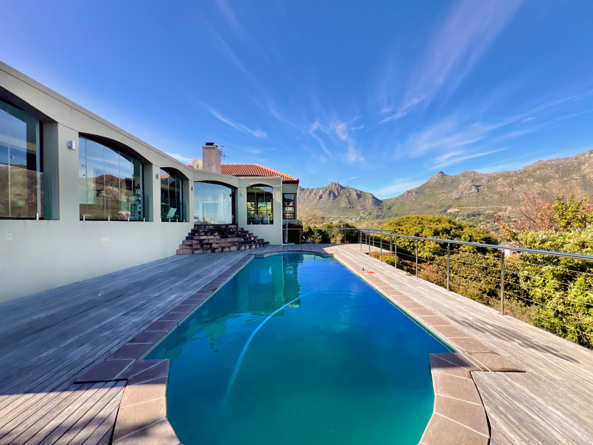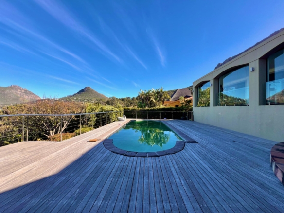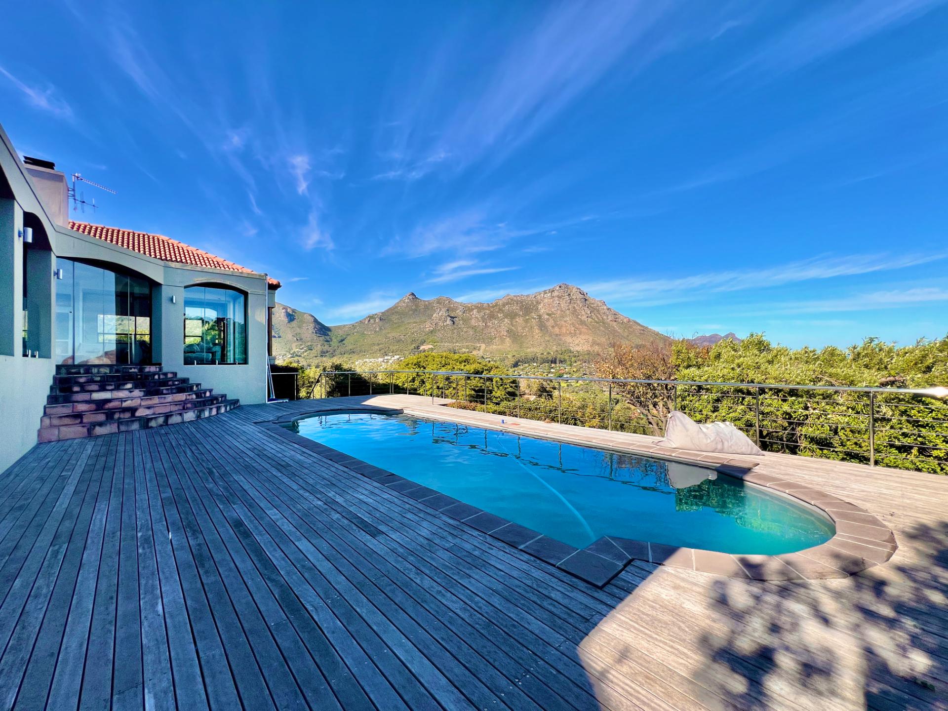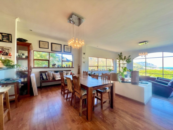 This comfortable 4-bedroom home is located in the sought-after Ruyteplaats Estate and offers space, security, and stunning views over Hout Bay, the beach, surrounding mountains, and all the way to the Noordhoek lighthouse.