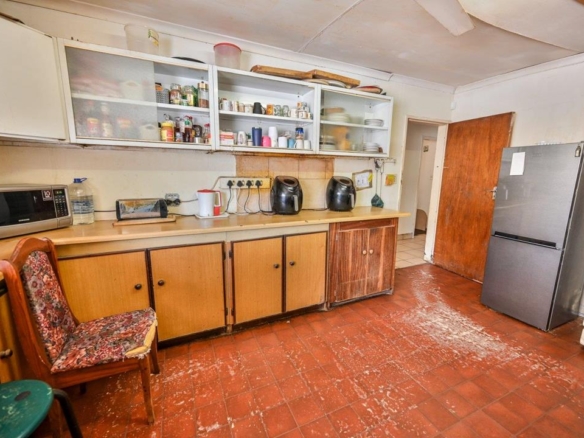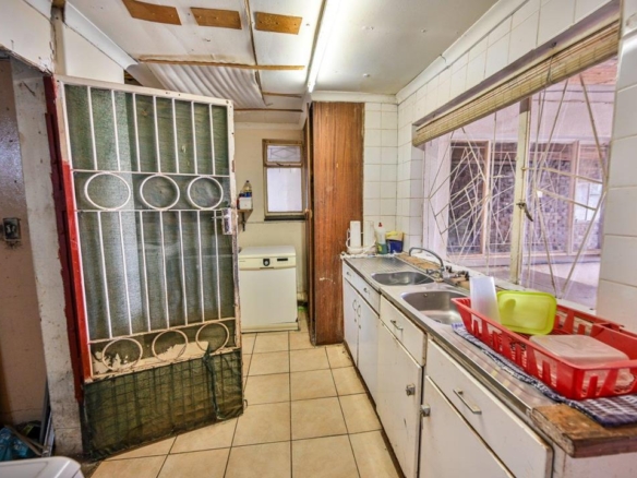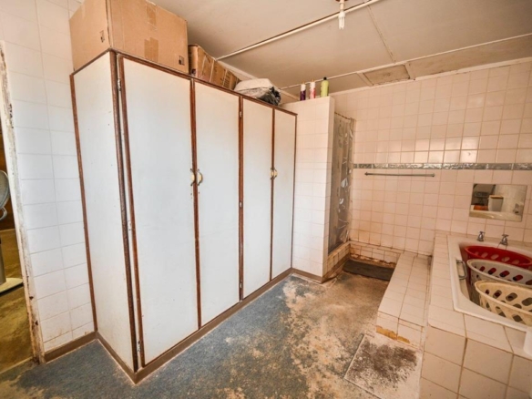 The kitchen offers ample built-in cupboards and a separate scullery, while 2 bathrooms a separate toilet and yet another possible 3rd bathroom already equipped with basin and toilet. A double garage adds for an expansive layout allows for easy reconfiguration to suit student housing needs.
